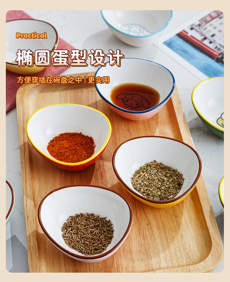 산리오 디핑 접시 가정용 세라믹 간장 식초 조미료 피클 접시 전골 바베큐 작은 접시 귀여운 식기