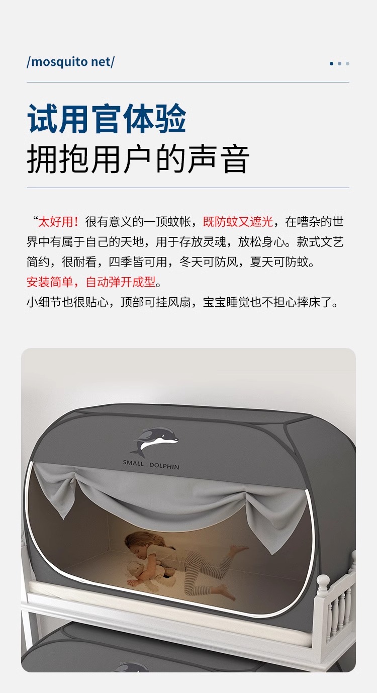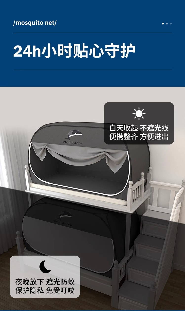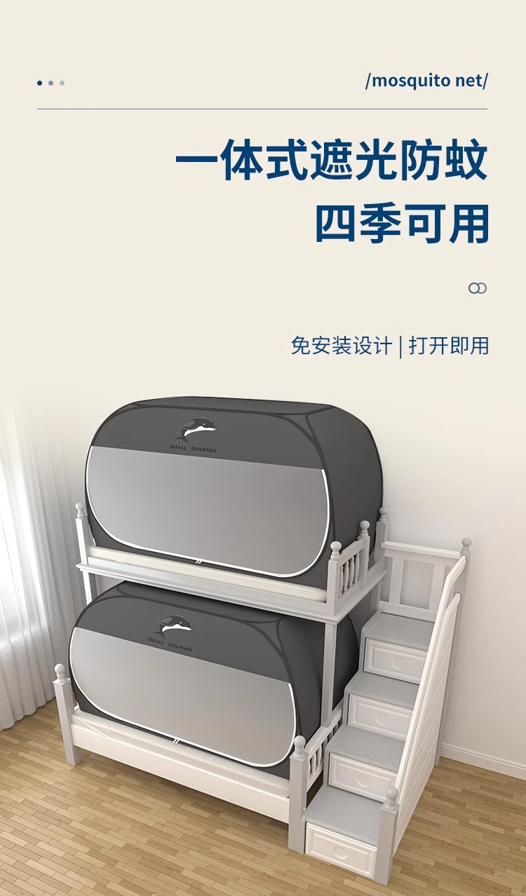 학생기숙사용 차광모기장 0.9m 이층침대 커튼 일체형 무설치 몽골리안 침대 1.2m1
