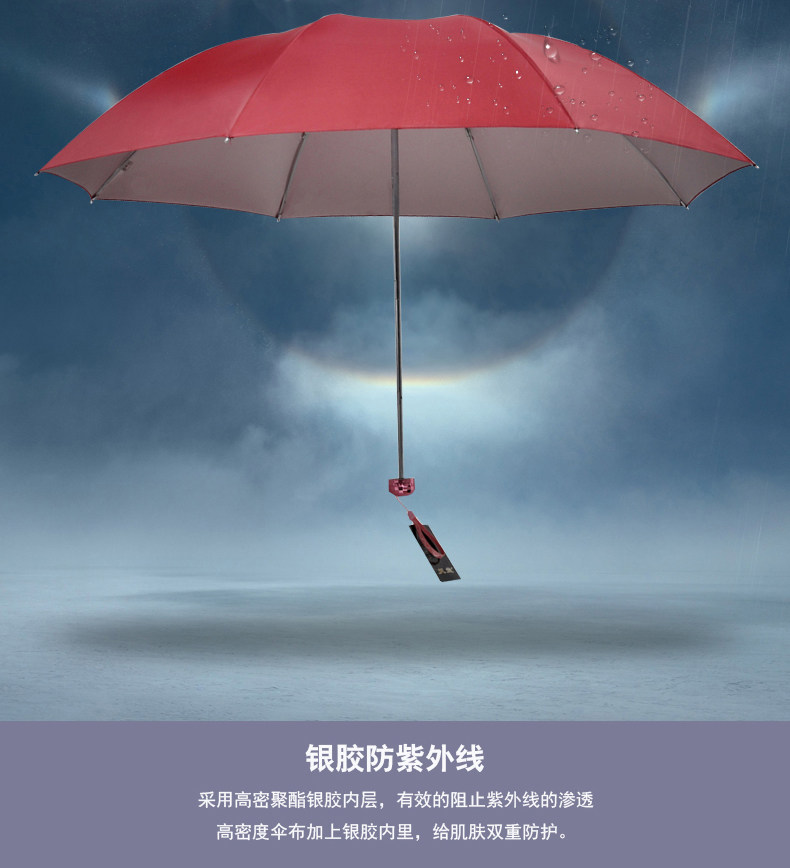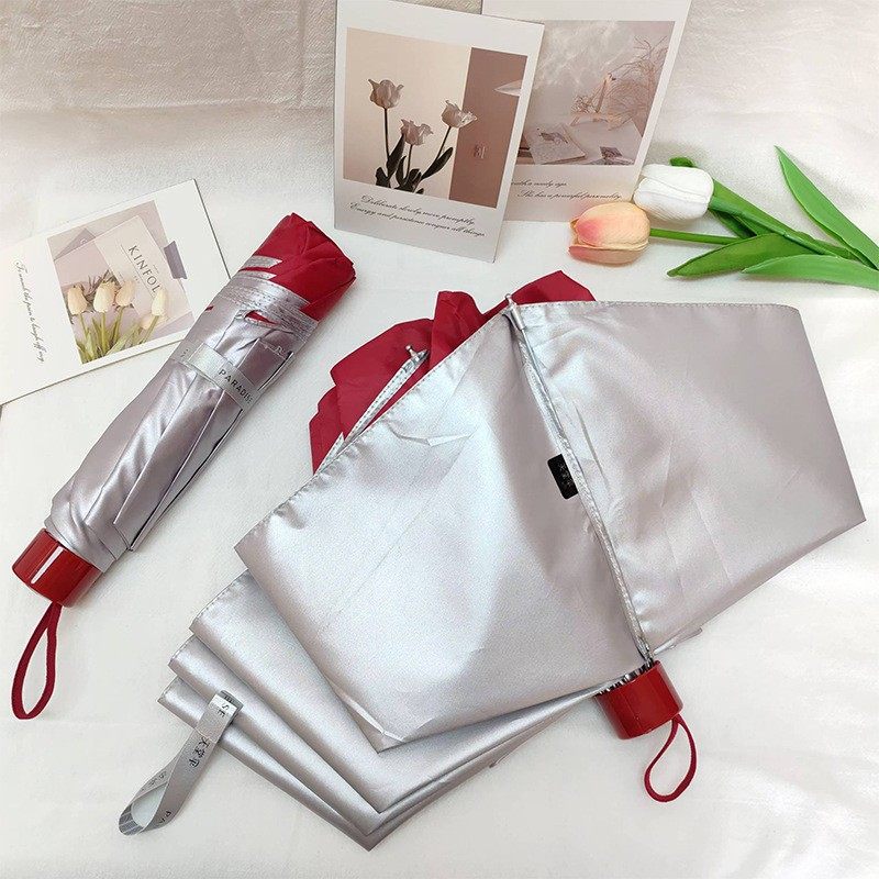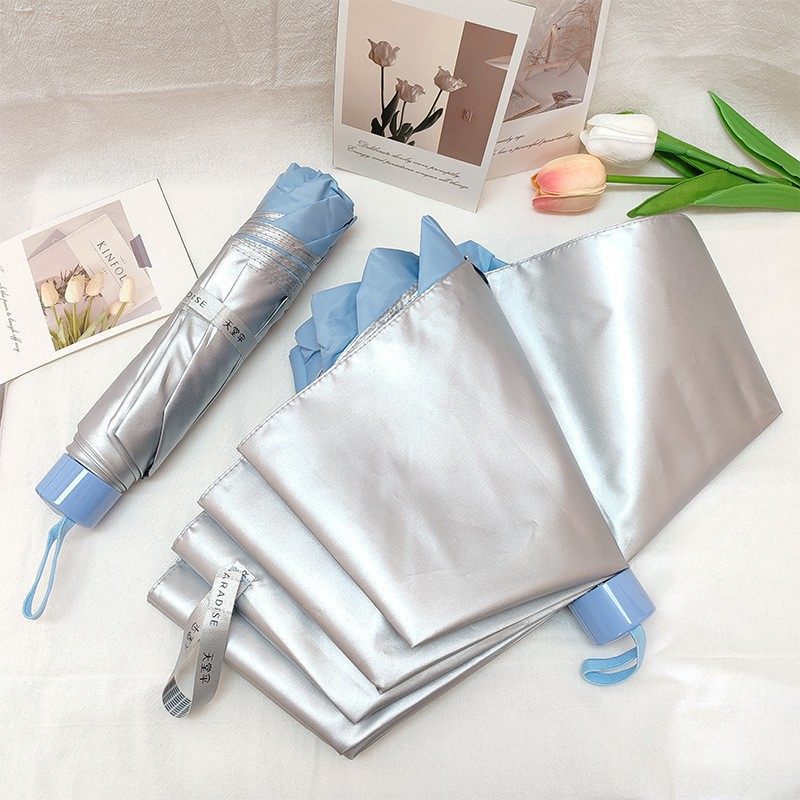 파라다이스 우산 도매 336T 실버 고무 안티 자외선 차단제 3 접이식 우산 광고 선물을 인쇄 할 수 있습니다 로고 프로모션스토어 가기