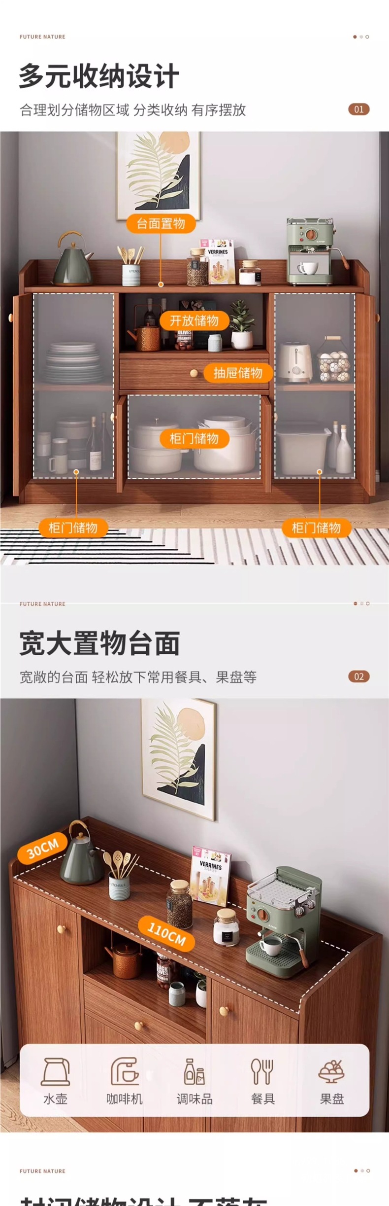 수납장 대용량 수납장 홈 다이닝 사이드 캐비닛 벽걸이형 일체형 수납장 거실 차 수납장 주방 캐비닛