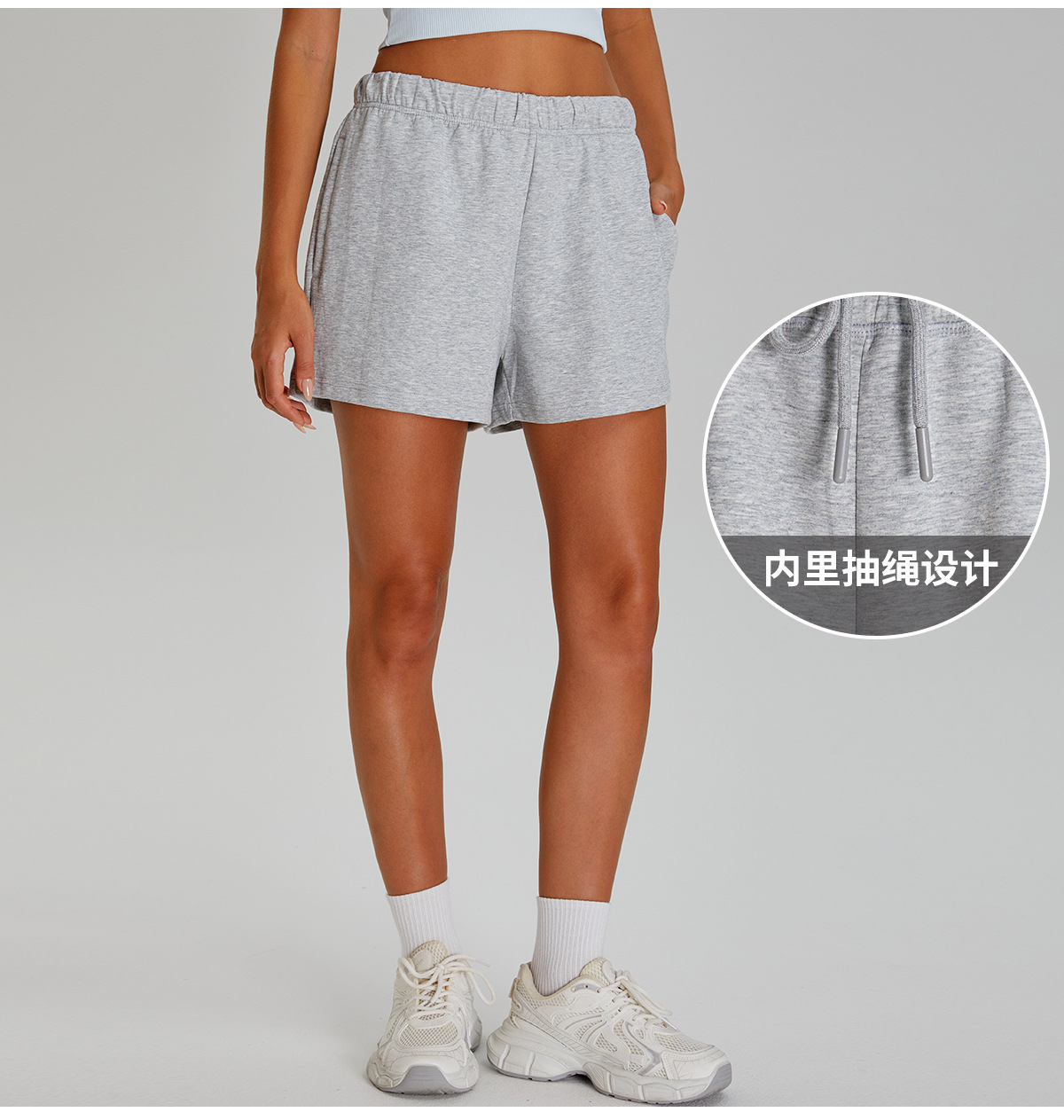 국경 간 새로운 캐주얼 올 매치 스포츠 반바지 여성 아우터 착용 야외 달리기 피트니스 통기성 드로우 스트링 요가 3 점 바지