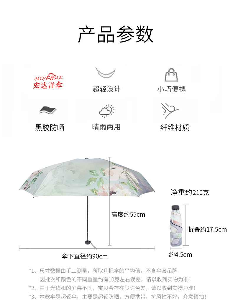 Hongda 초경량 태양 우산, 소형 및 휴대용 50% off 비닐 자외선 차단 및 자외선 차단 우산, 비가 오나 눈이 오나 우산