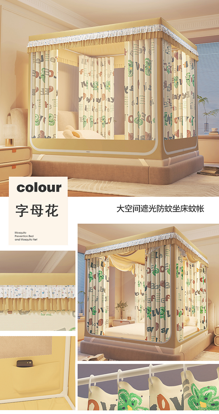 2025 새로운 클래스 A 아기 낙하 방지 모기장 홈 차광 침대 커튼 일체형 설치가 필요없는 몽골리안 텐트 침대 텐트스토어 가기
