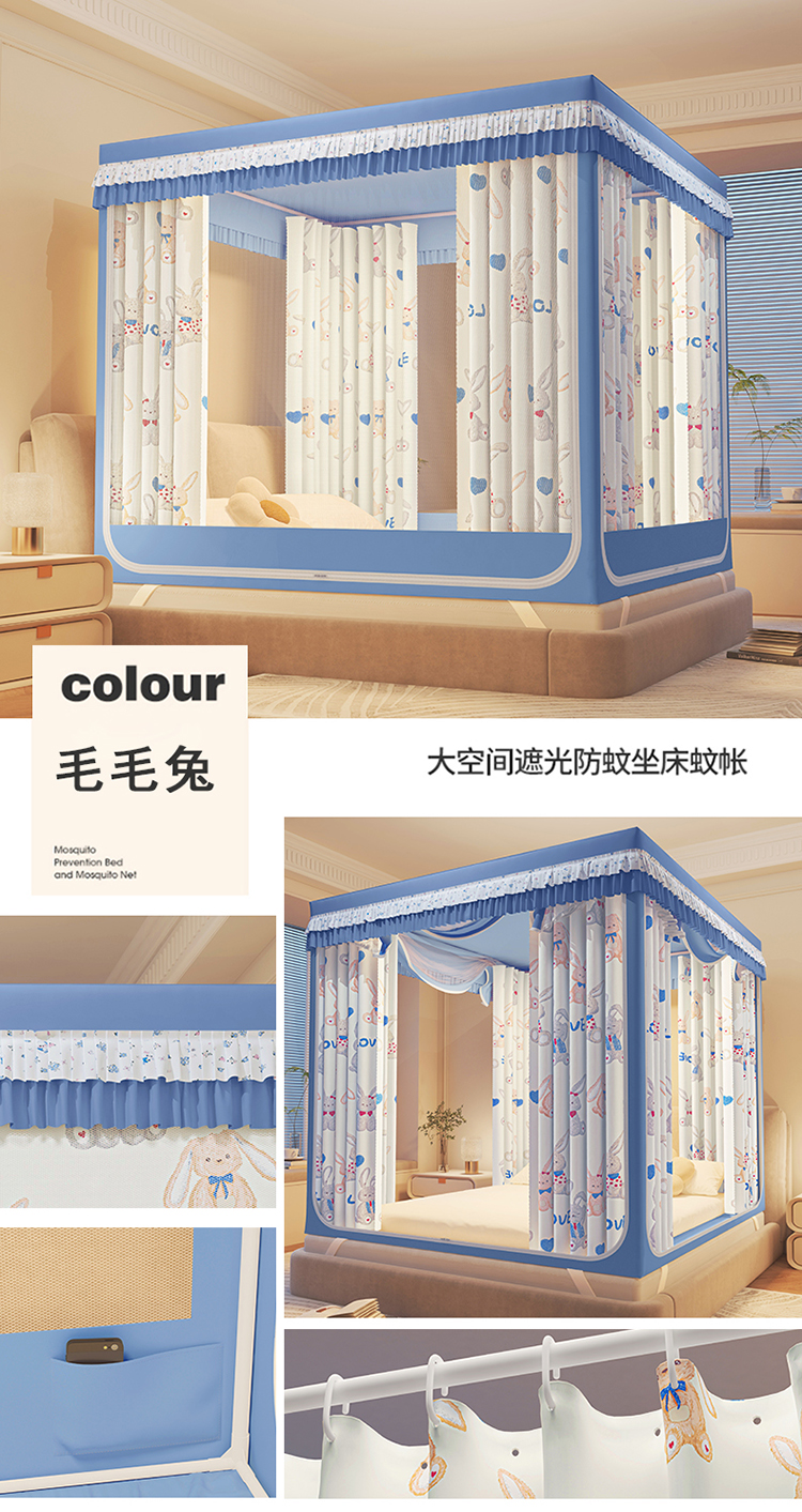 • 2501 마오마오 토끼 [A급 + 5면 슈퍼 쉐이딩 + 대담한 자체 연결 브래킷 + 모기 방지 및 낙하 방지 + 사생활 보호]