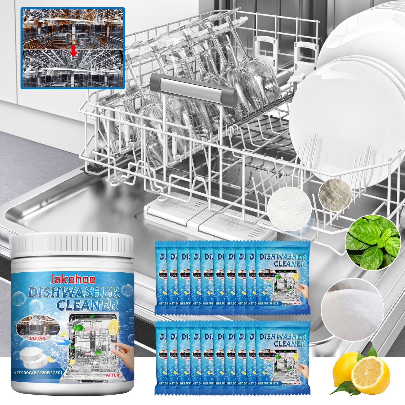 jakehoe 식기세척기 세척정 식기세척기 특수 세척제 광택제 세척, 기름 제거 및 먼지 제거