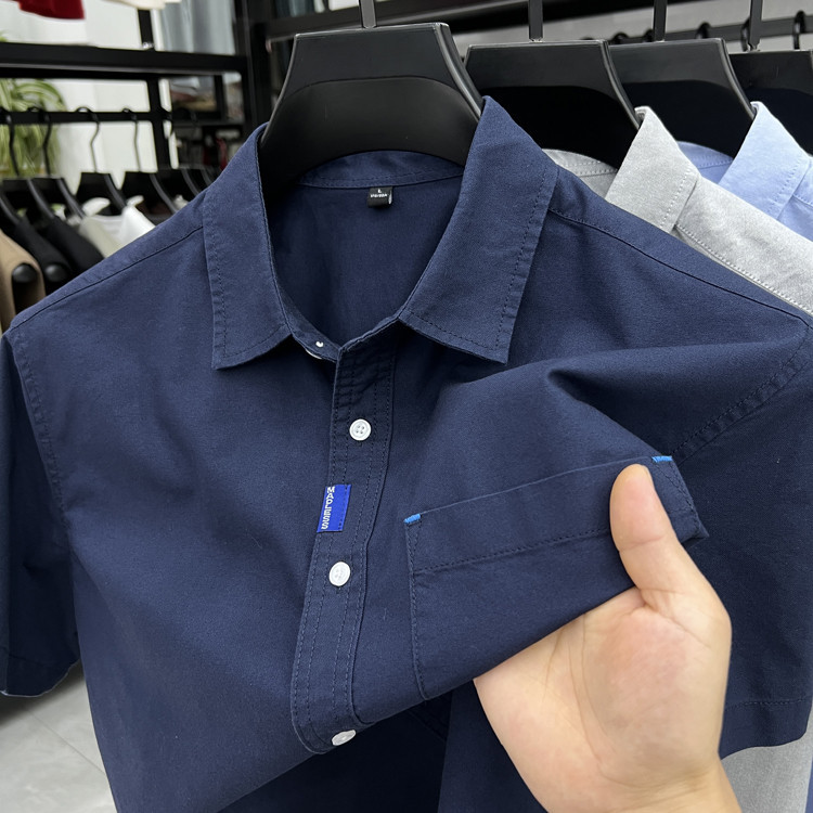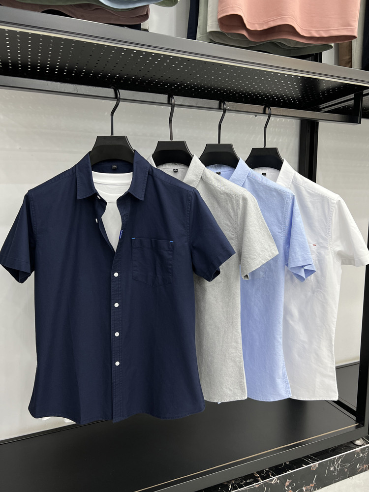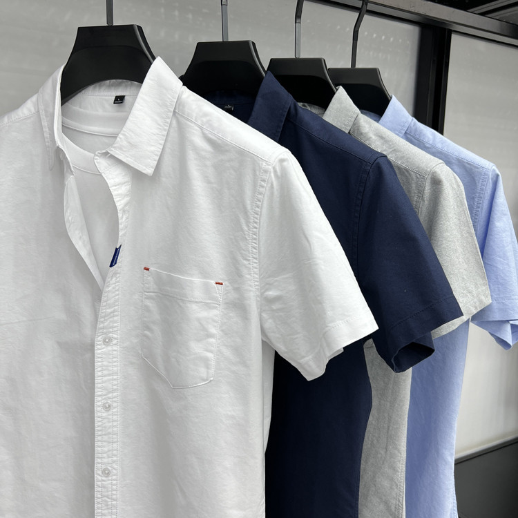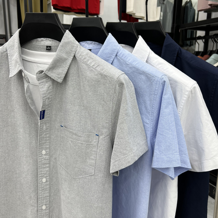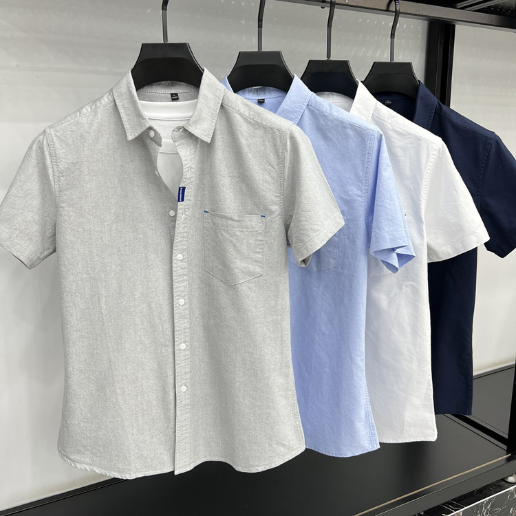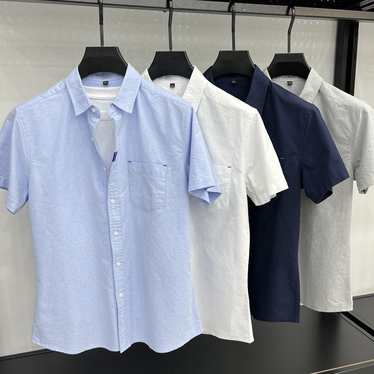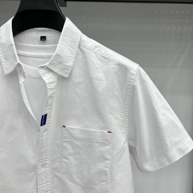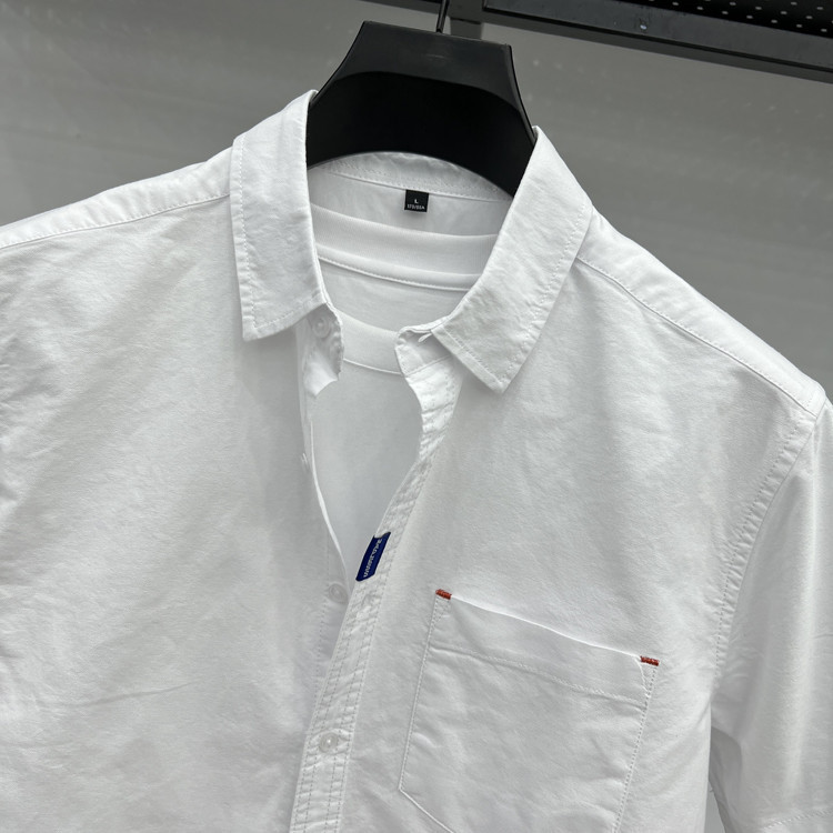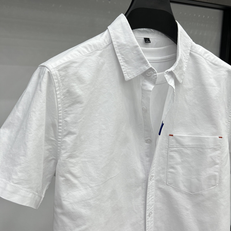 여름 흡습 및 통기성 남성용 순면 반팔 셔츠 새로운 스타일의 리얼 포켓 워시 셔츠 남성용 반팔스토어 가기