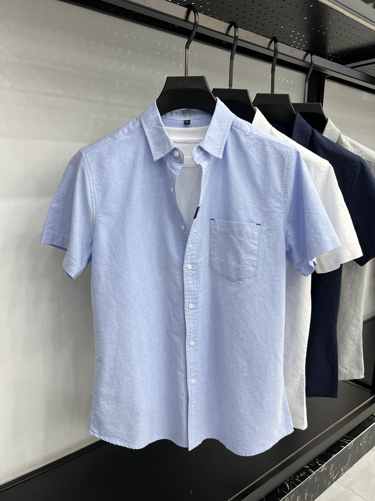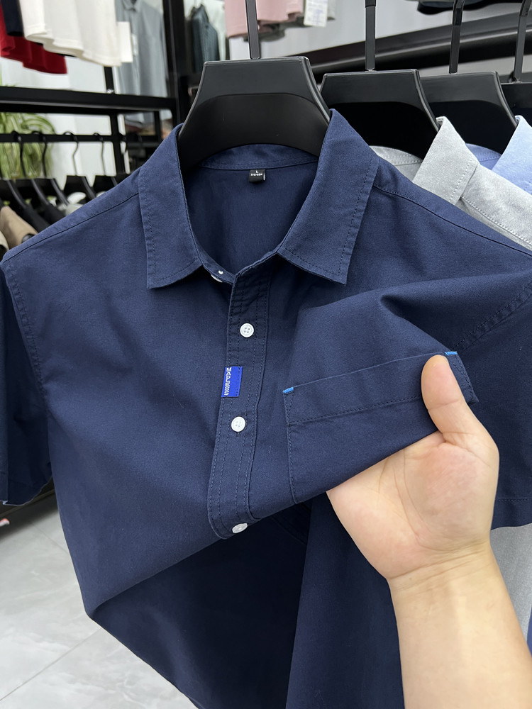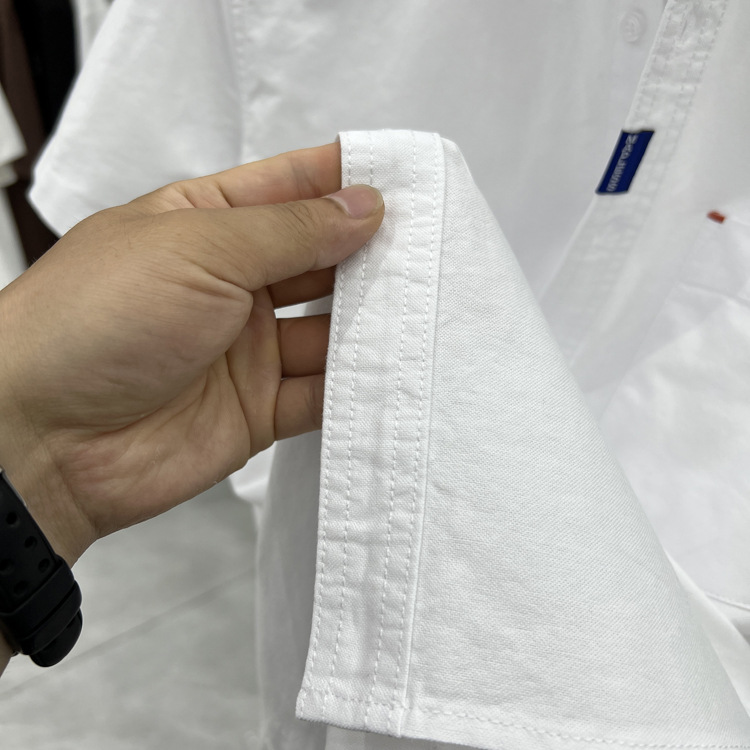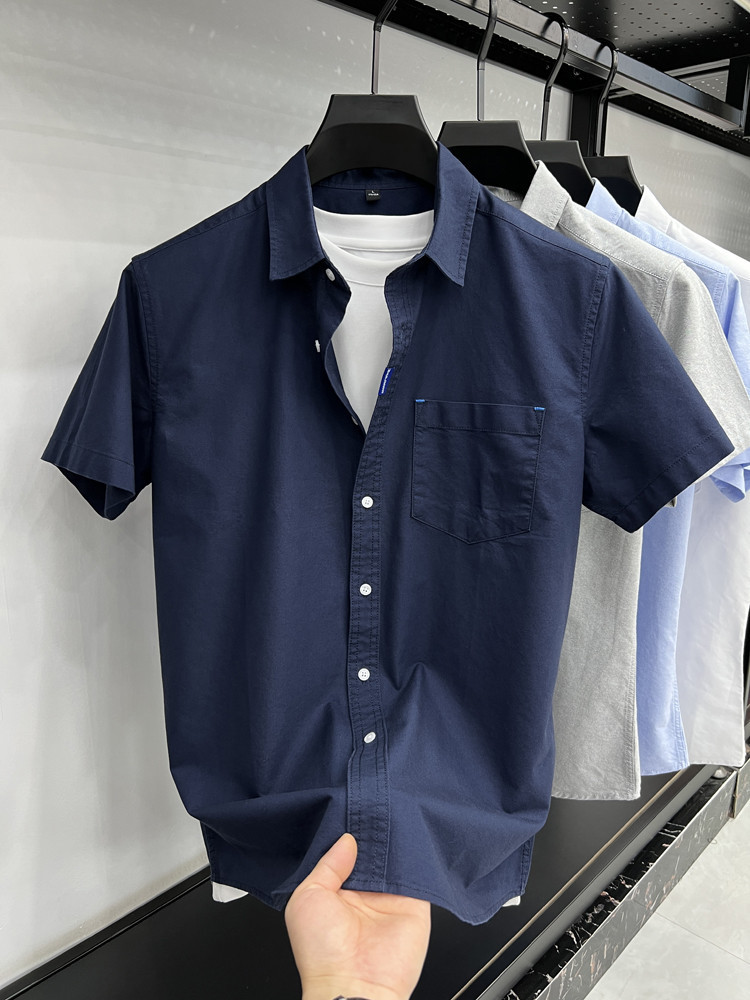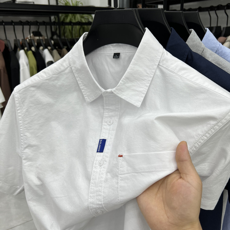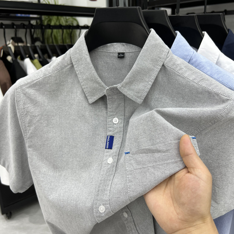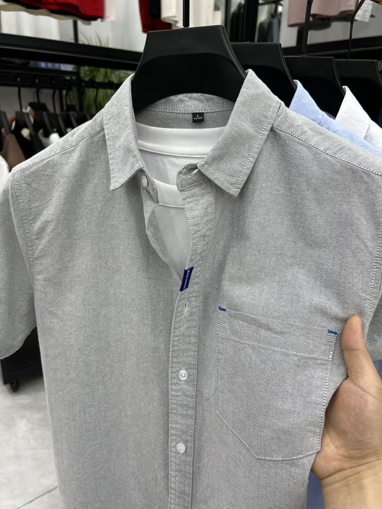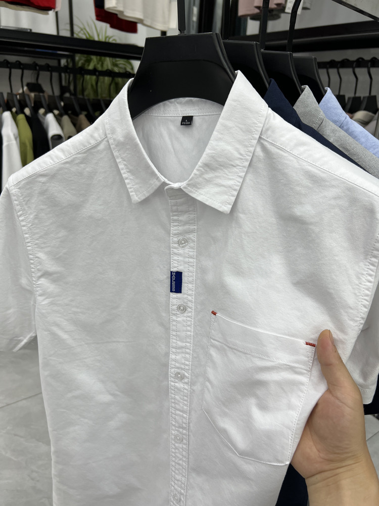 여름 흡습 및 통기성 남성용 순면 반팔 셔츠 새로운 스타일의 리얼 포켓 워시 셔츠 남성용 반팔스토어 가기