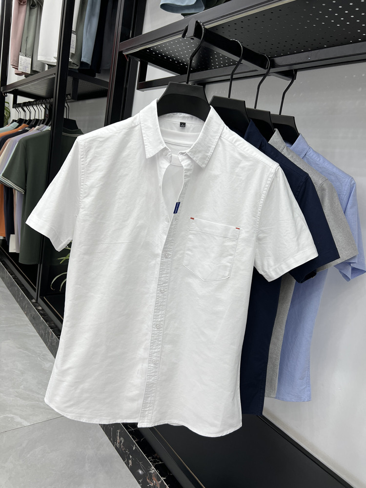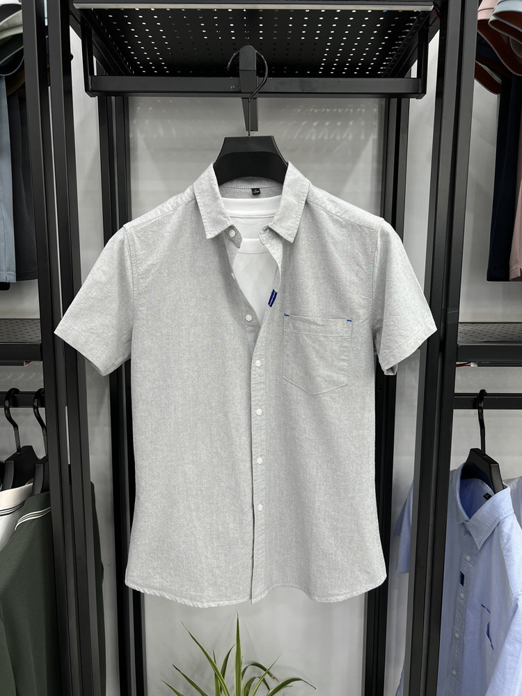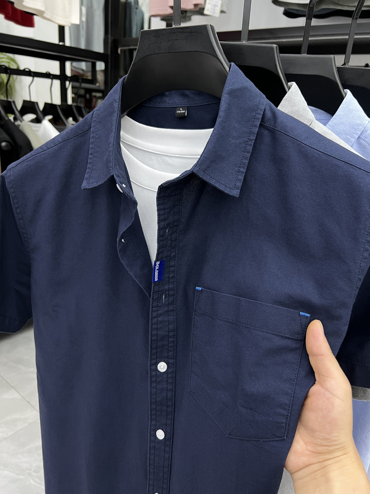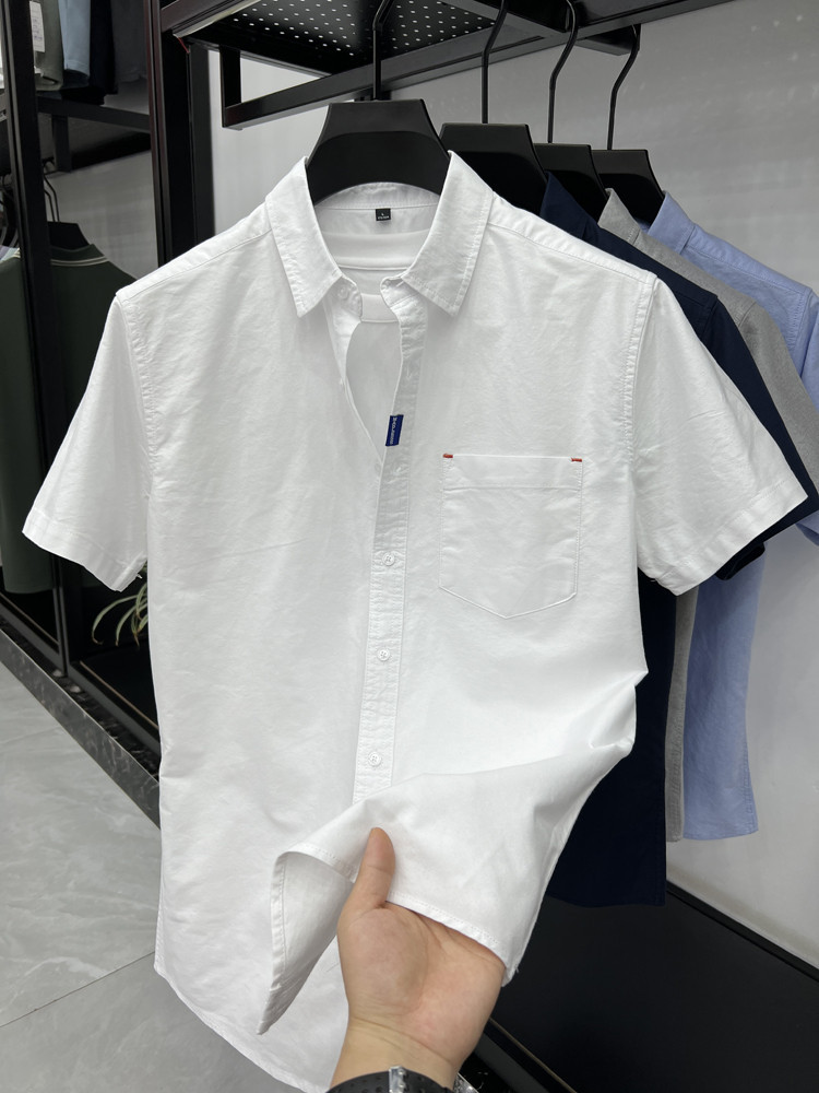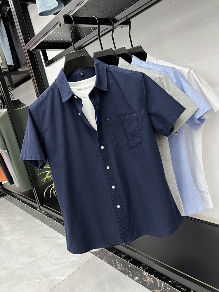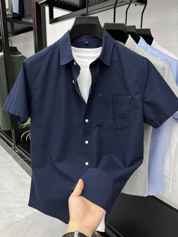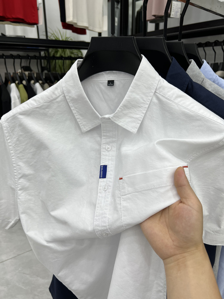 여름 흡습 및 통기성 남성용 순면 반팔 셔츠 새로운 스타일의 리얼 포켓 워시 셔츠 남성용 반팔스토어 가기