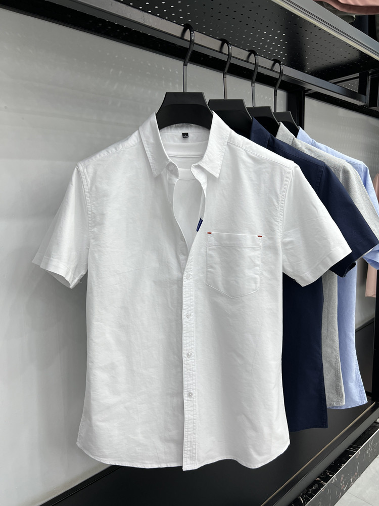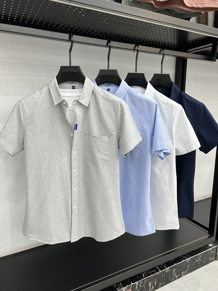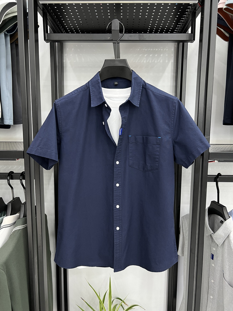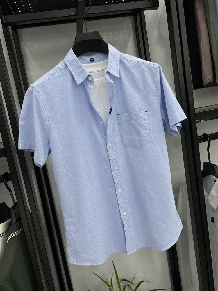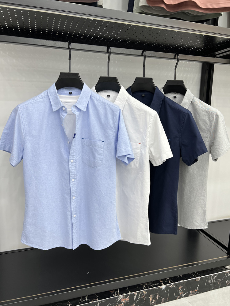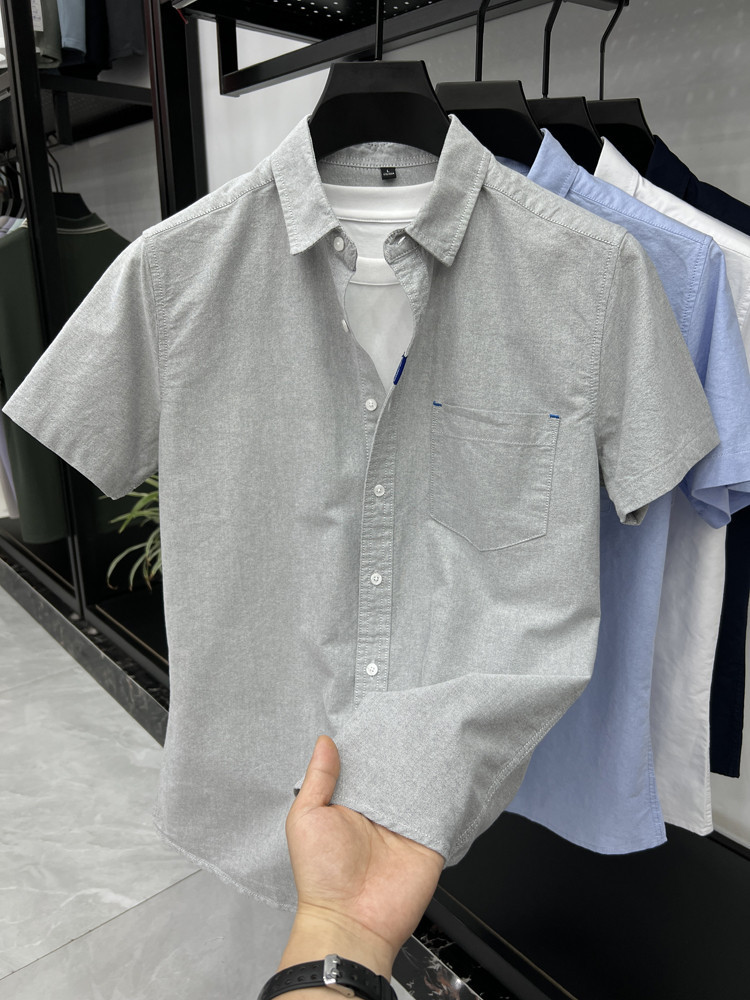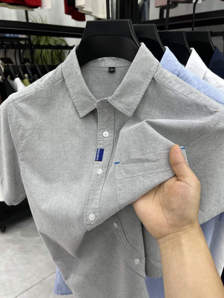 여름 흡습 및 통기성 남성용 순면 반팔 셔츠 새로운 스타일의 리얼 포켓 워시 셔츠 남성용 반팔스토어 가기