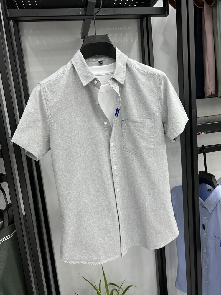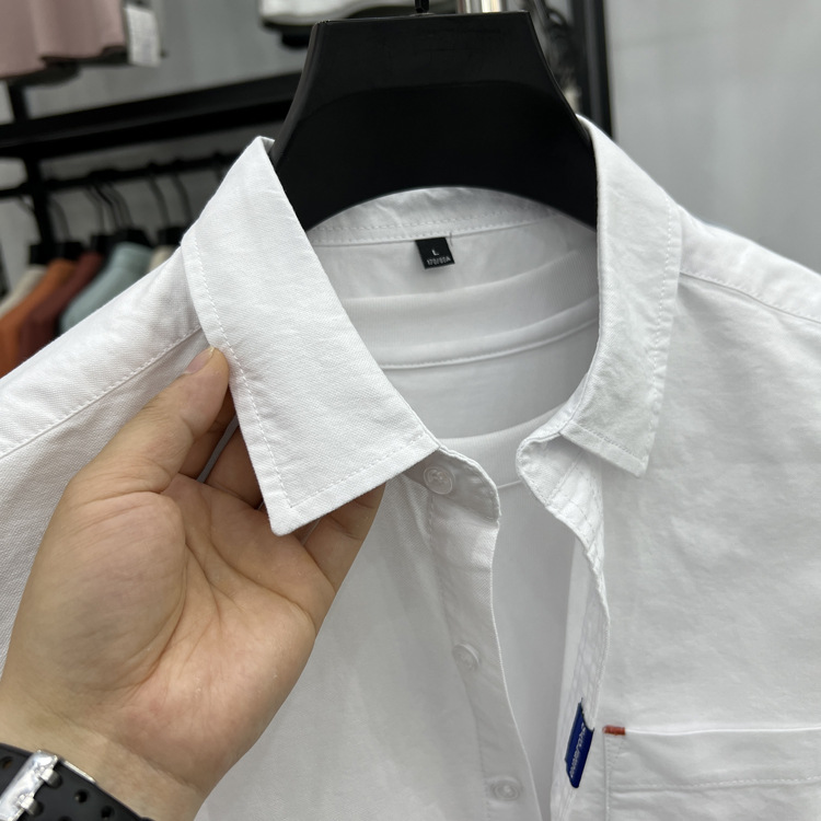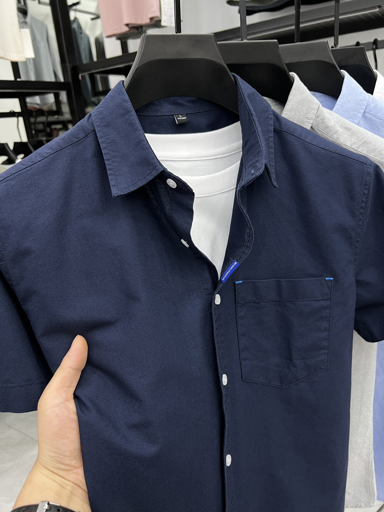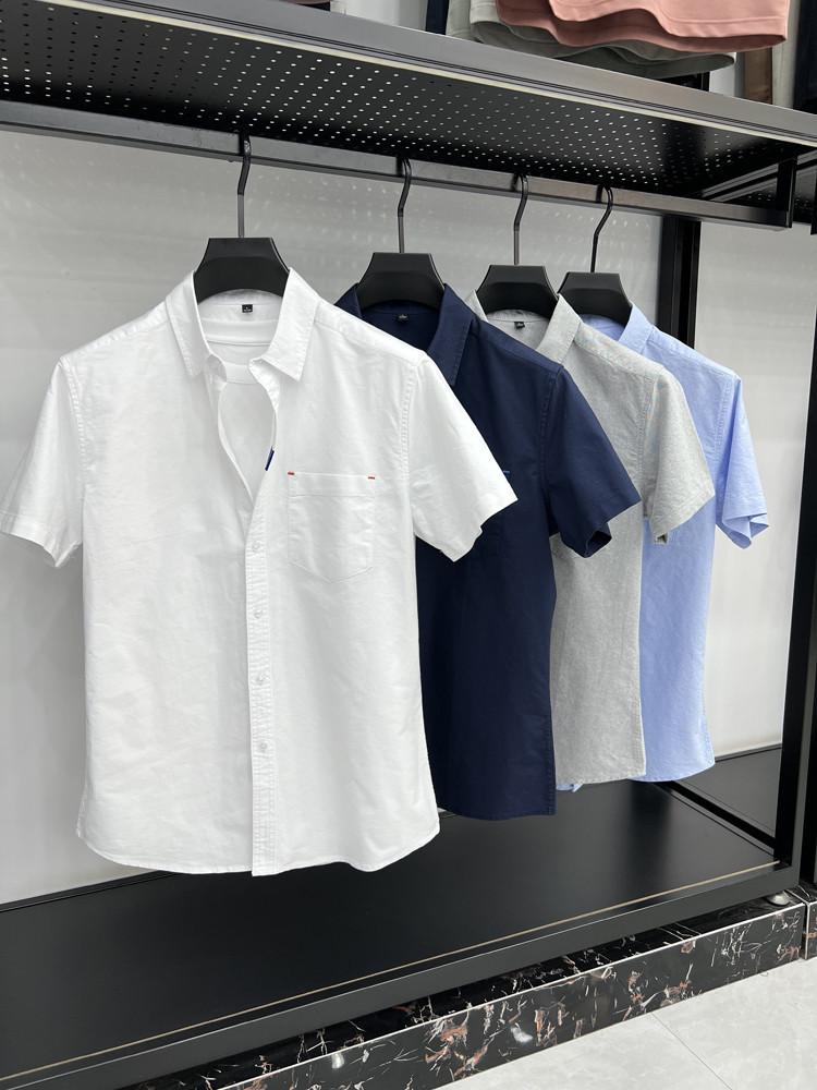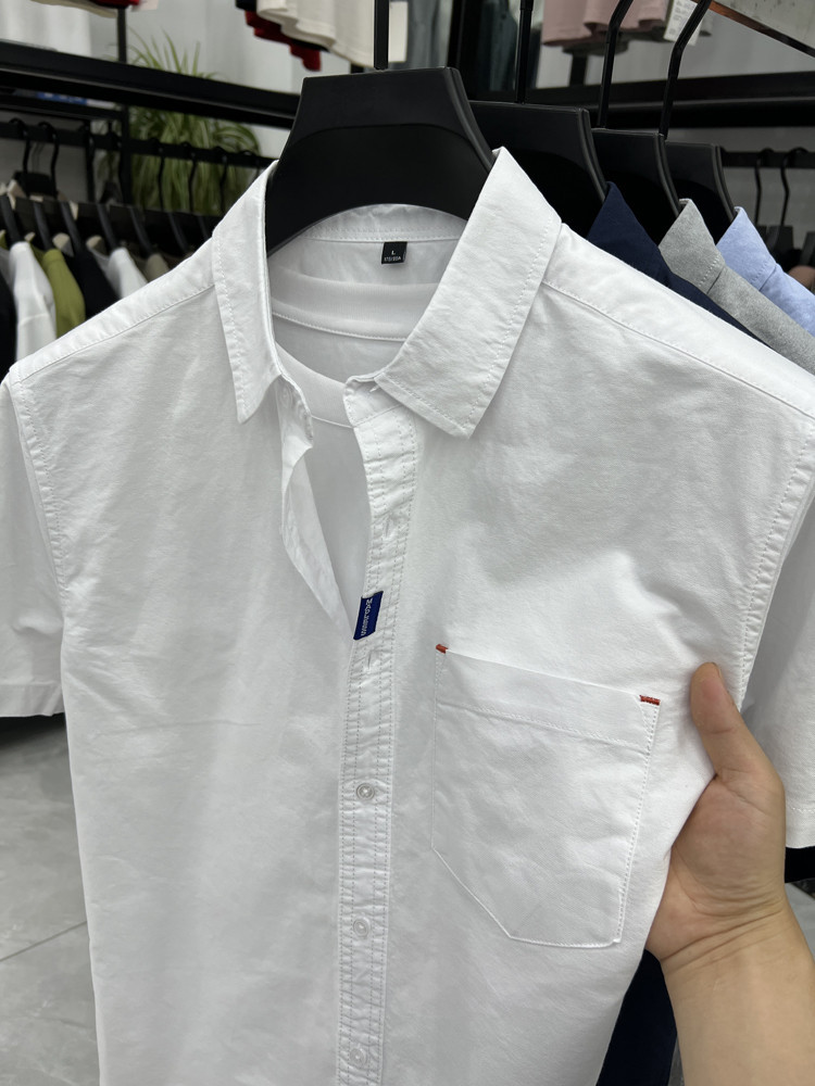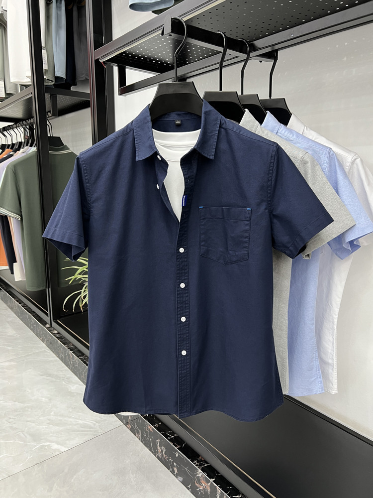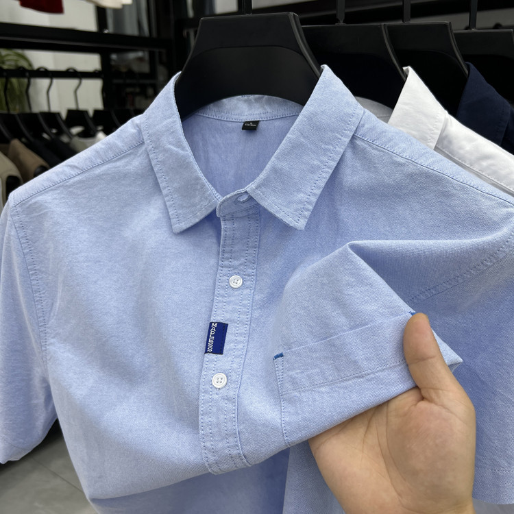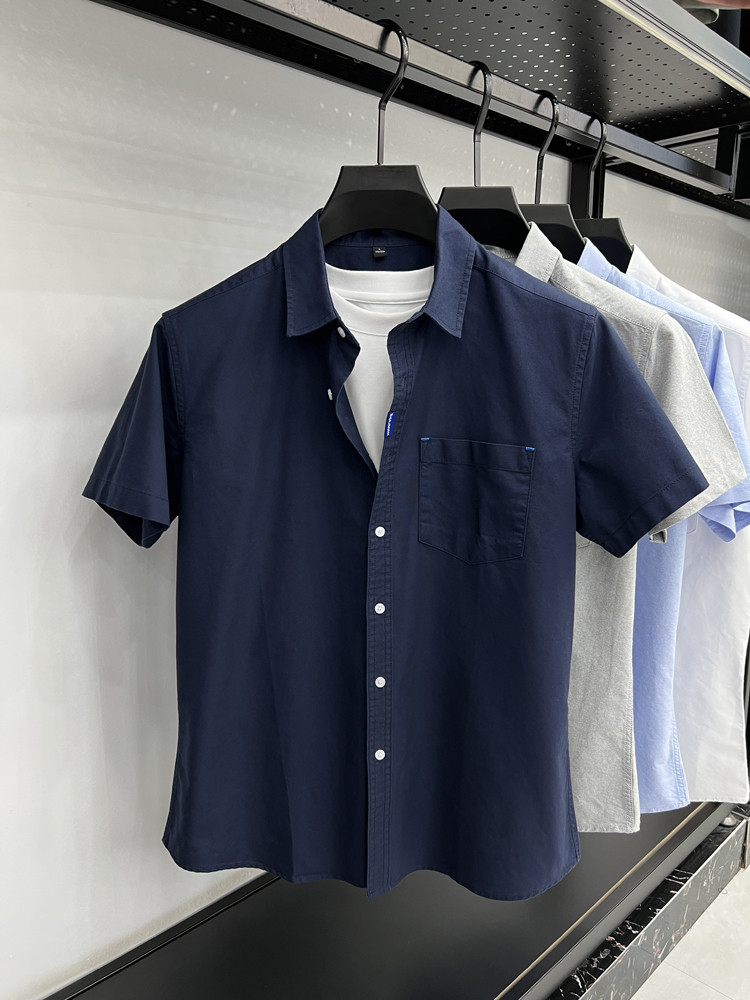 여름 흡습 및 통기성 남성용 순면 반팔 셔츠 새로운 스타일의 리얼 포켓 워시 셔츠 남성용 반팔스토어 가기