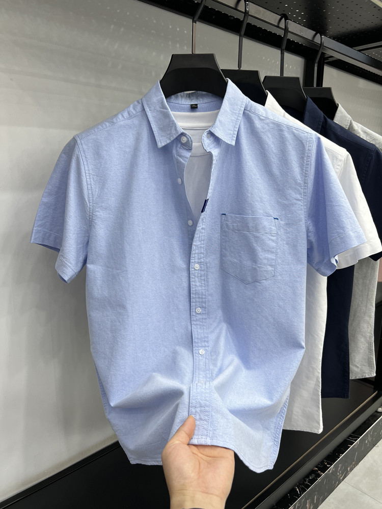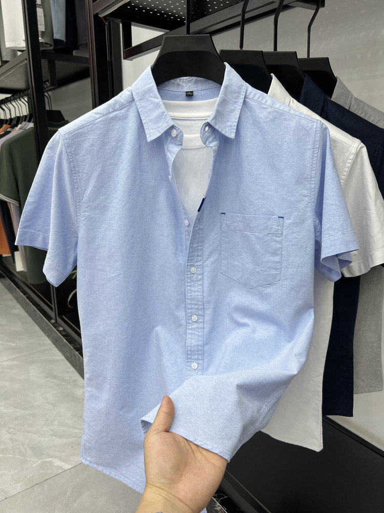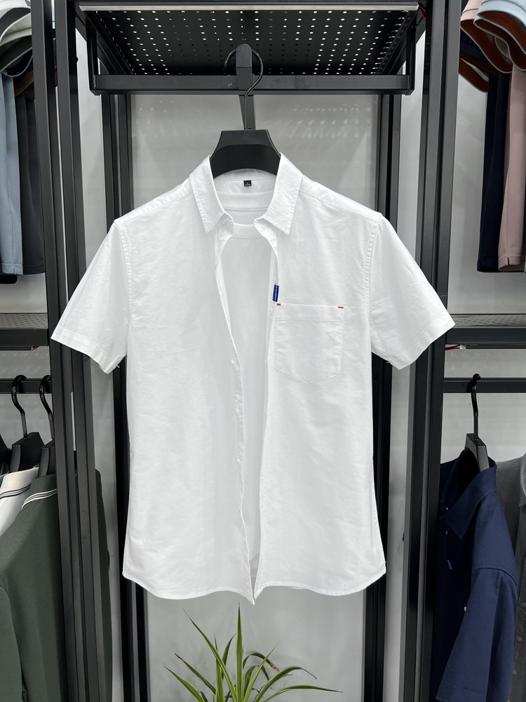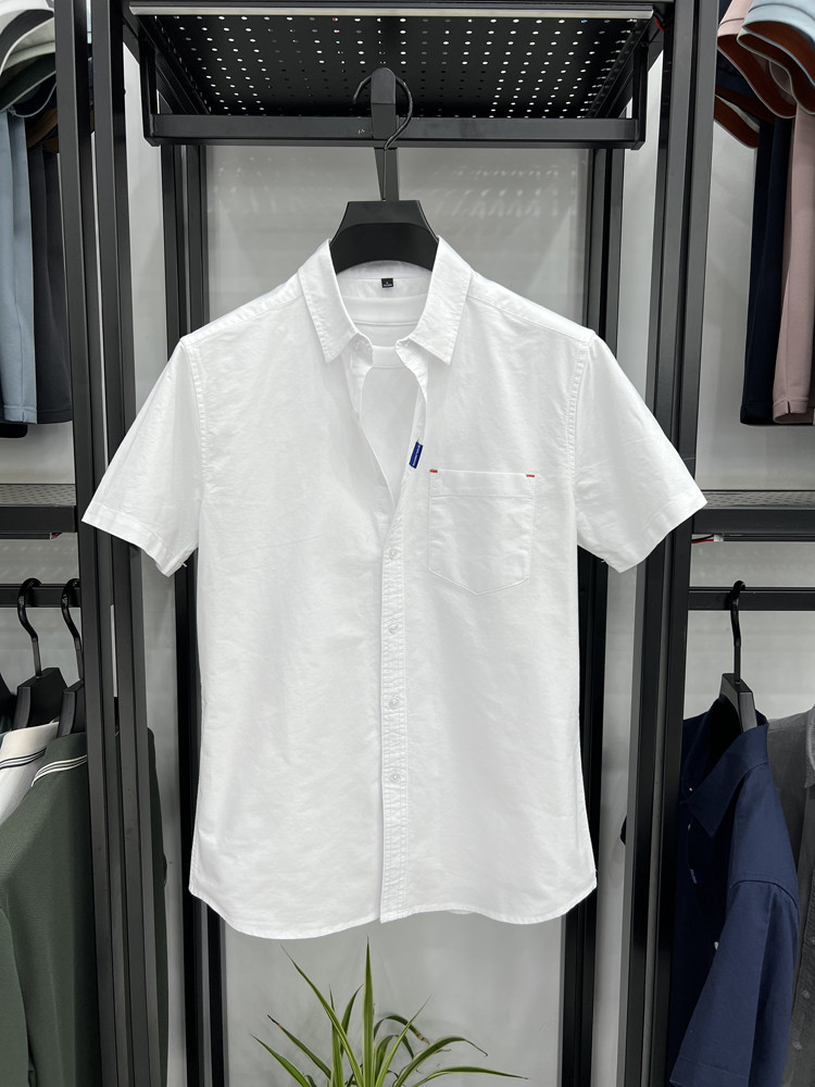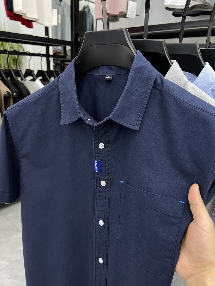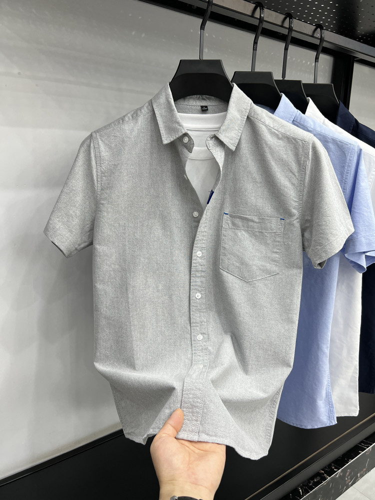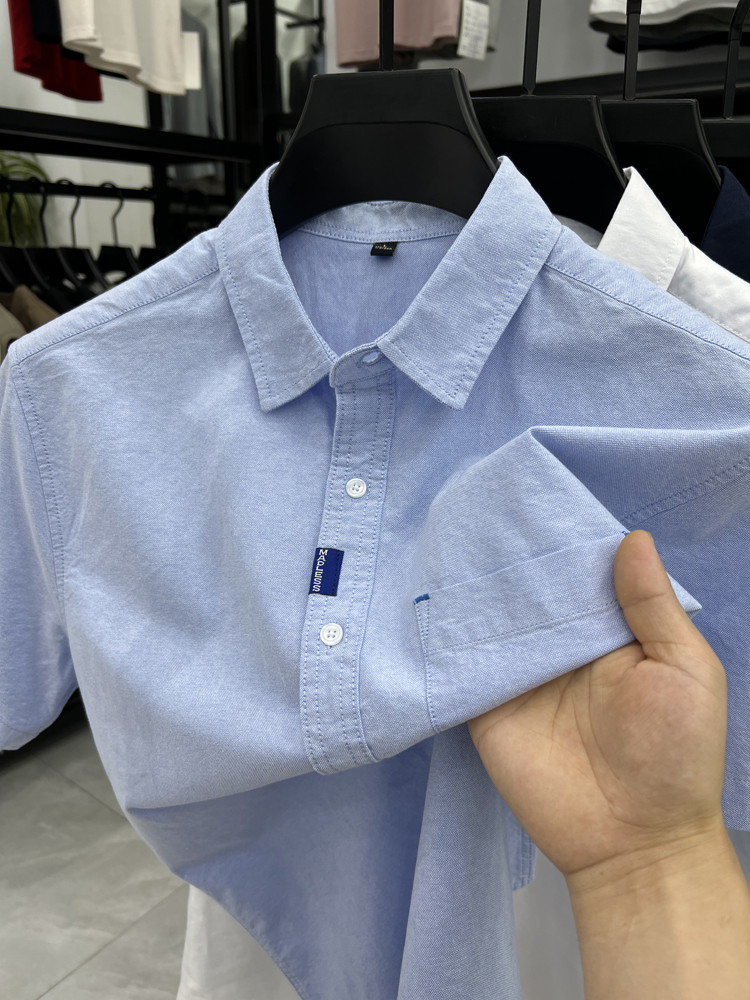여름 흡습 및 통기성 남성용 순면 반팔 셔츠 새로운 스타일의 리얼 포켓 워시 셔츠 남성용 반팔스토어 가기
