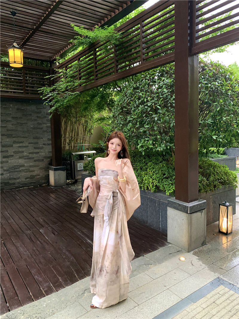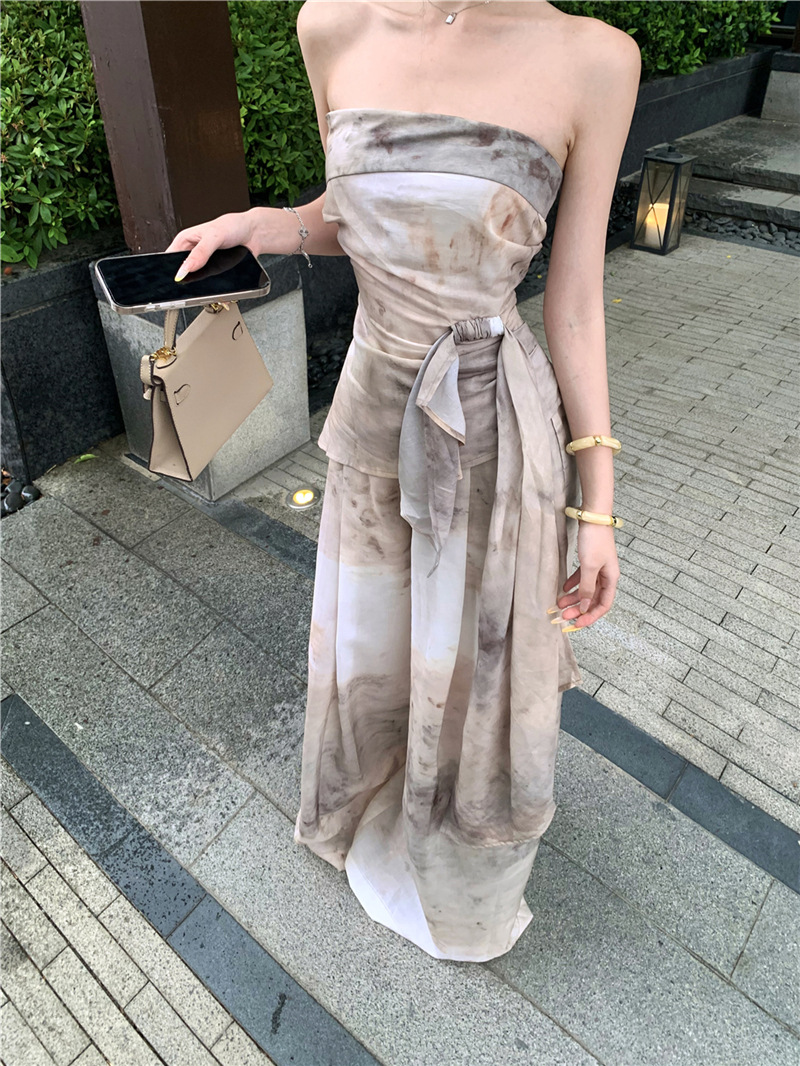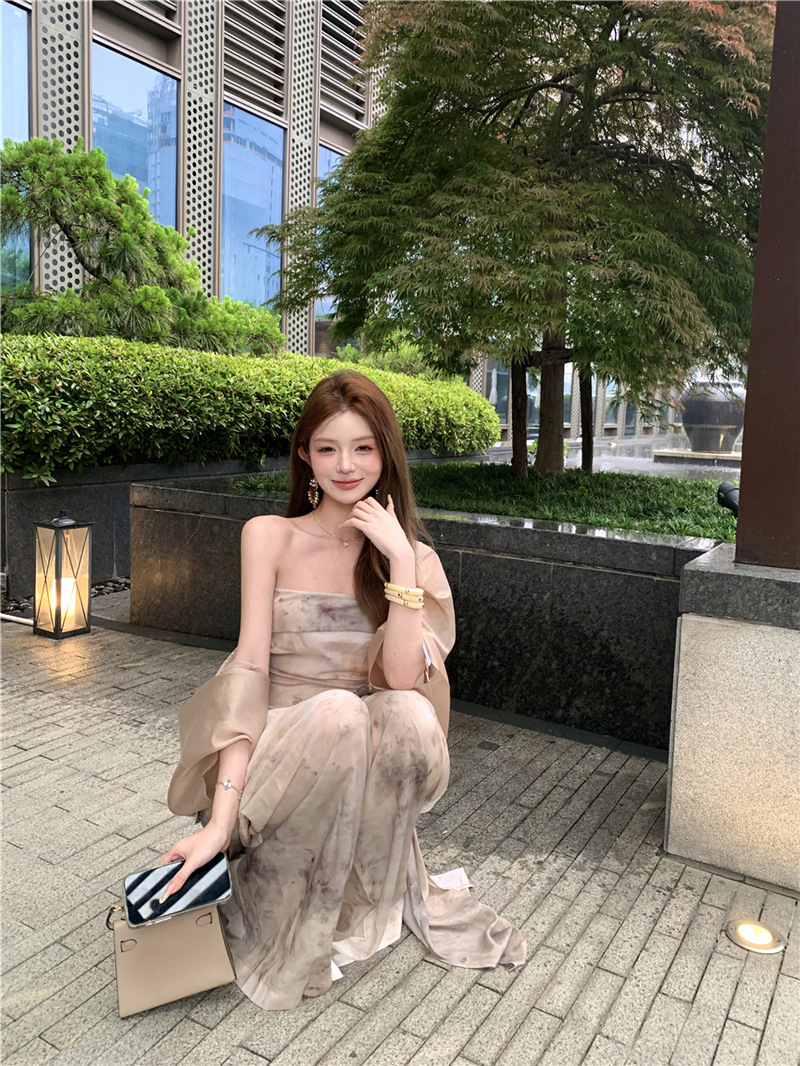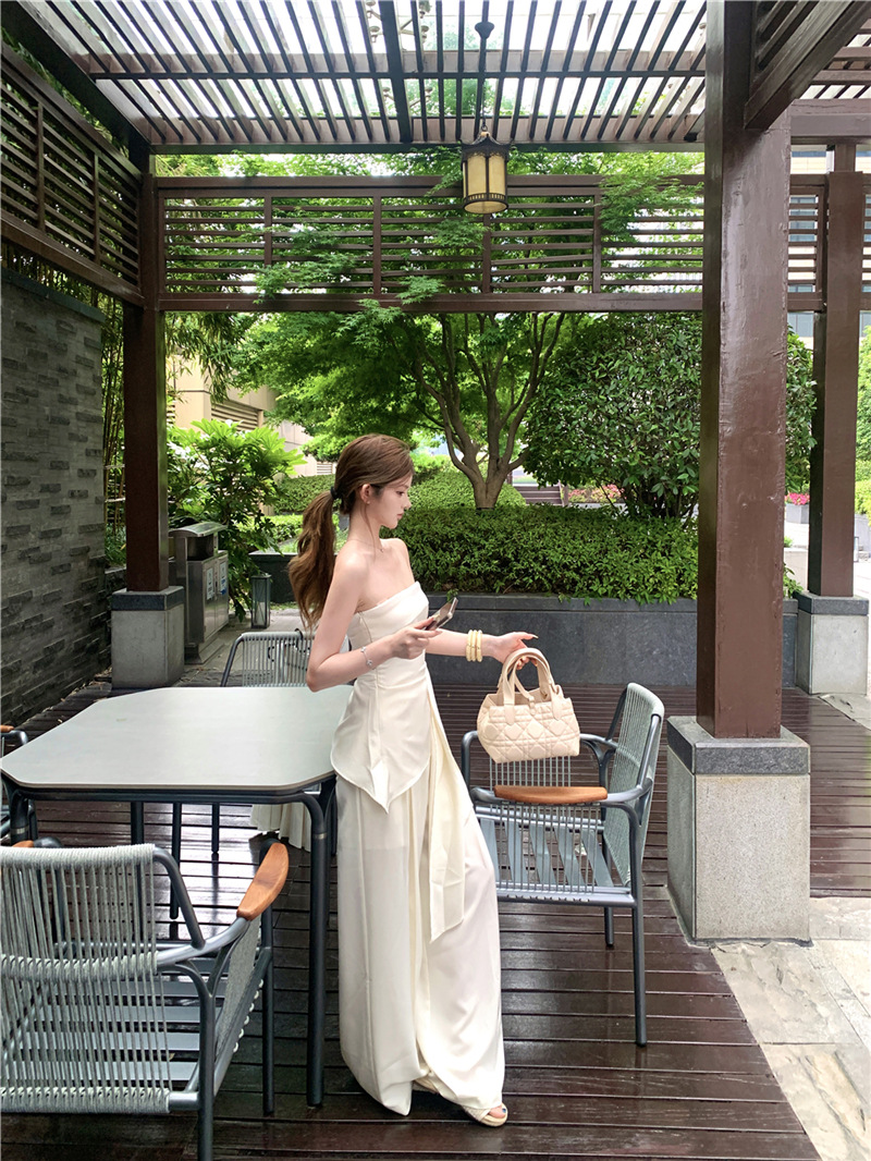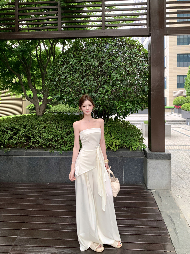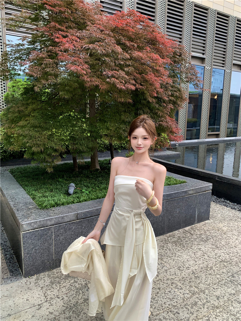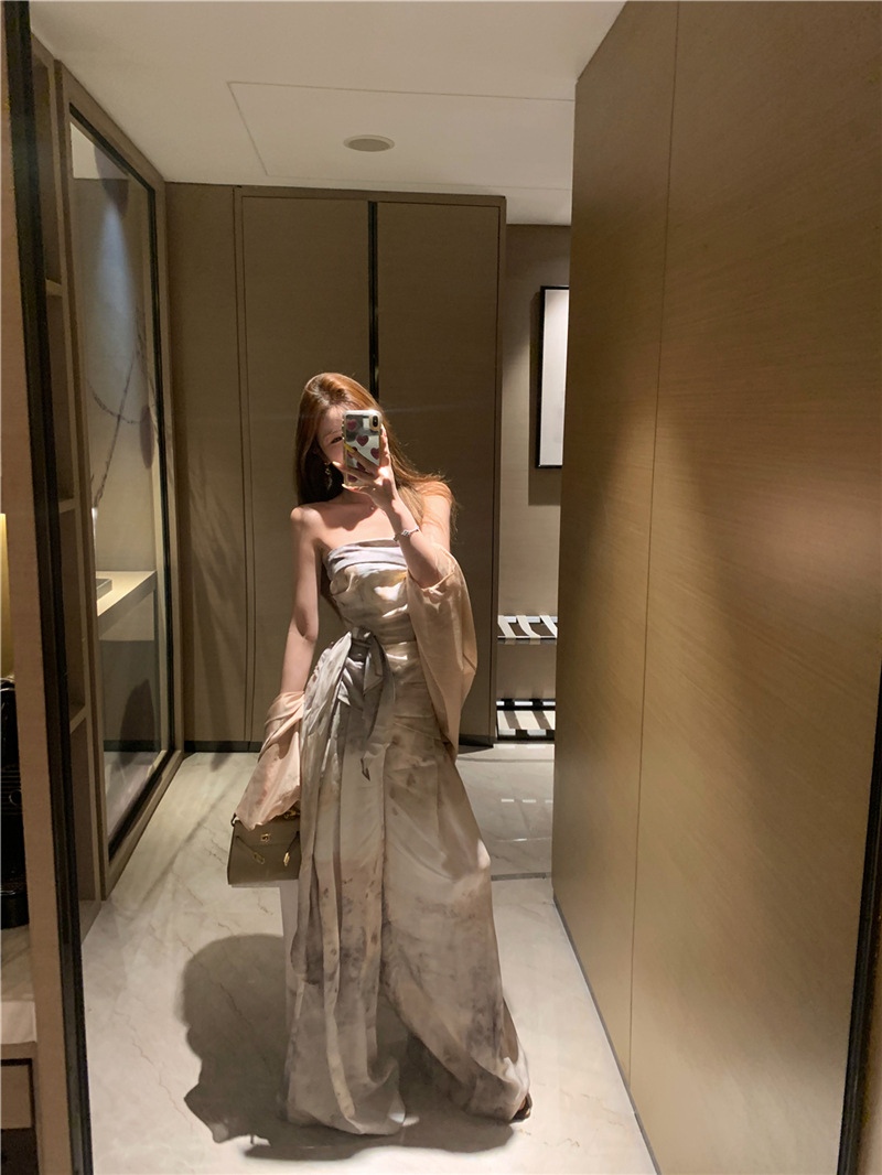 원 숄더 튜브 탑 + 하이 웨이스트 스트레이트 캐주얼 바지 + 여성용 다용도 자외선 차단 카디건 패션 슈트