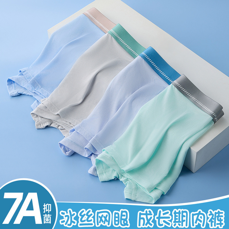 청소년 발달기 소년 얼음 실크 속옷 소년 중대형 어린이 뚱뚱한 어린이 여름 얇고 통기성