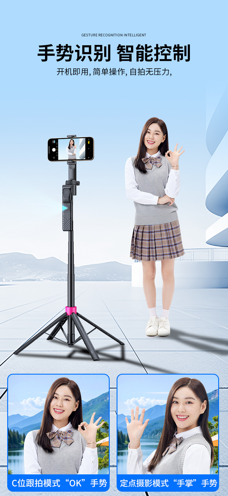 SS2 팔로우 카메라 짐벌 셀카봉 무선 블루투스 셀카폰 휴대폰 사진 원격 제어 라이브 방송 브래킷 컨트롤러스토어 가기