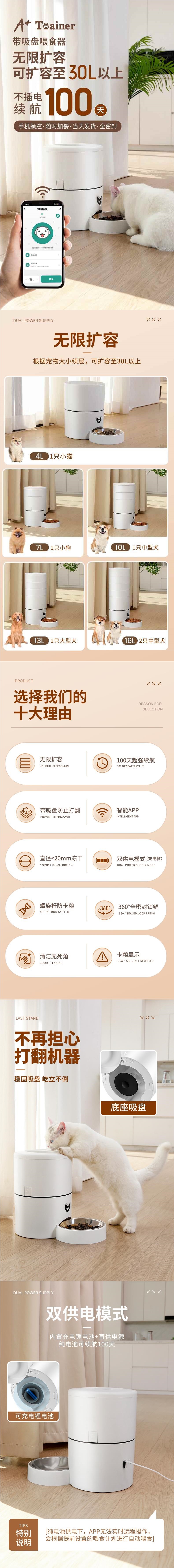 강아지와 고양이를 위한 대용량 원격 제어 지능형 자동 급식기, 고양이를 위한 시간 및 정량 급식기, 확장 가능 30리터
