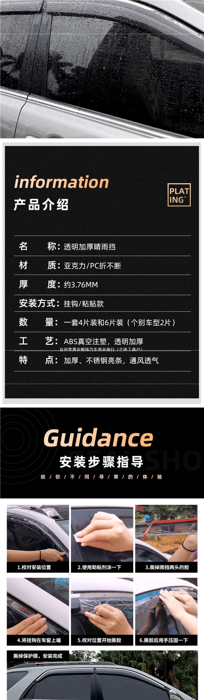 • BYD Qin L DMI 비 또는 빛 보호막 4개 [전기도금된 밝은 스트립 - 라벨링된 1쌍]
