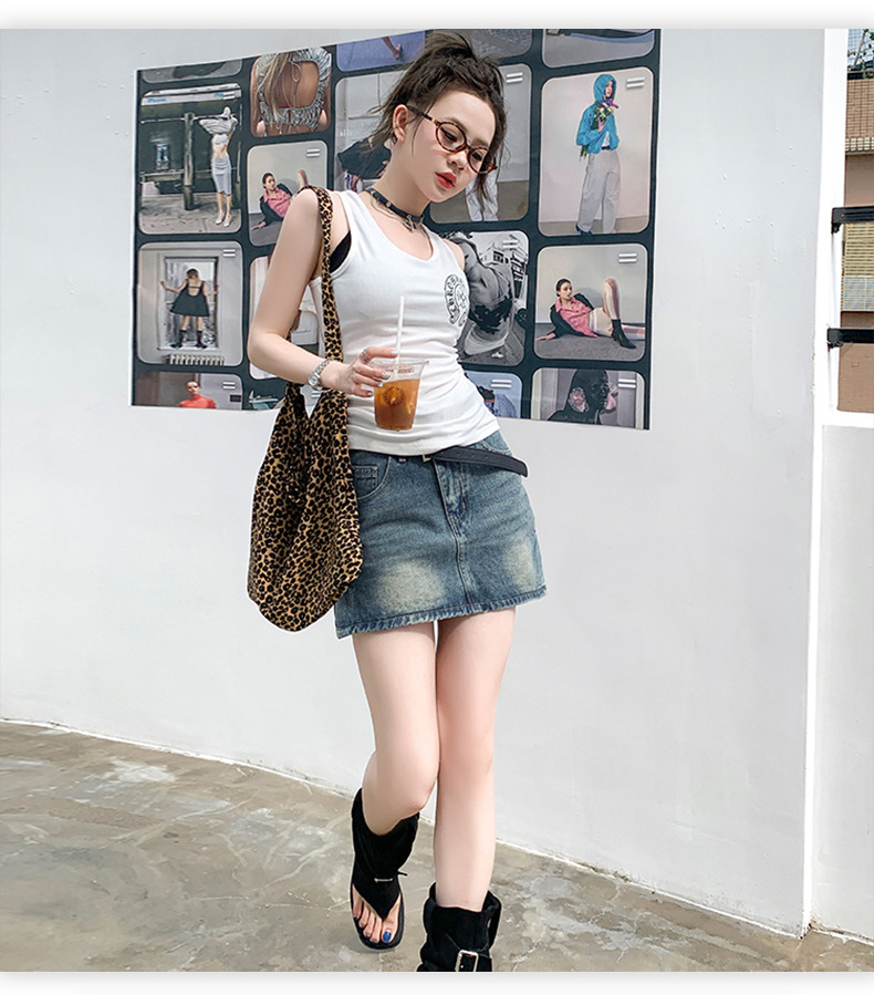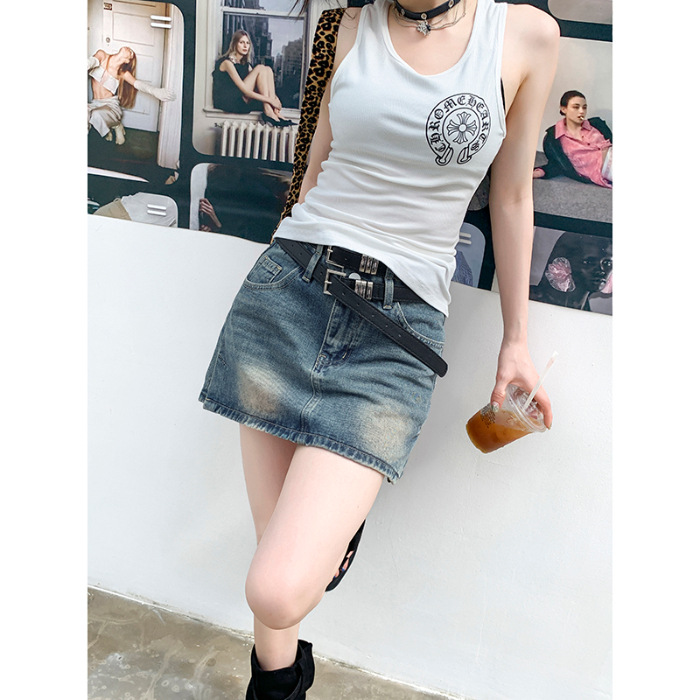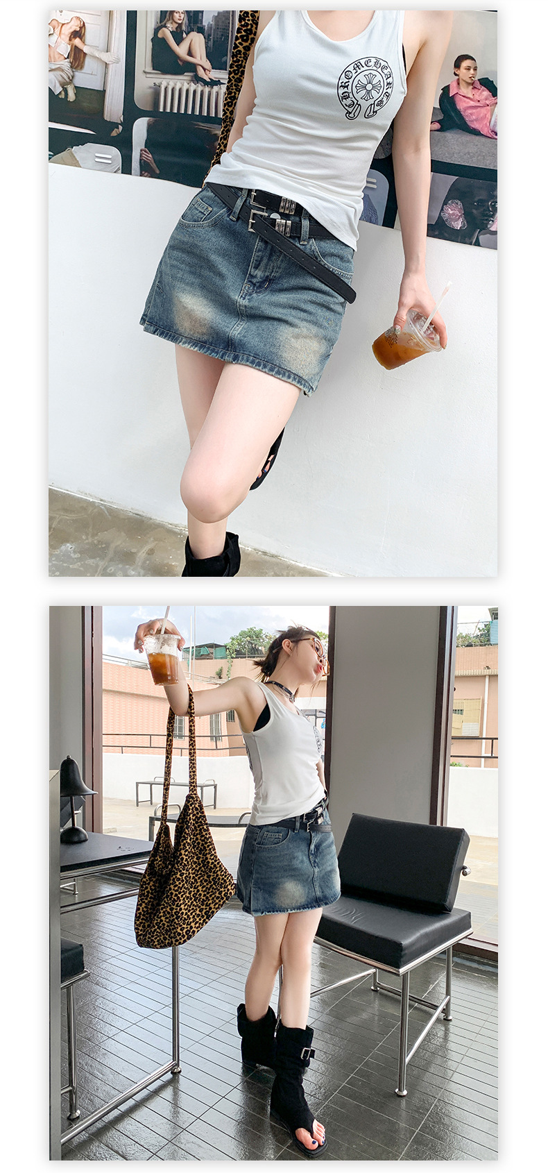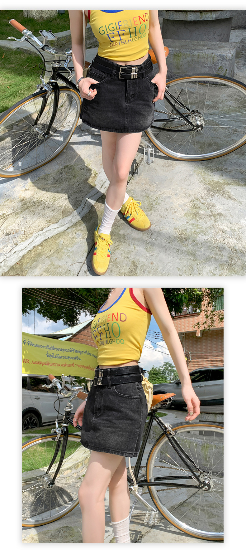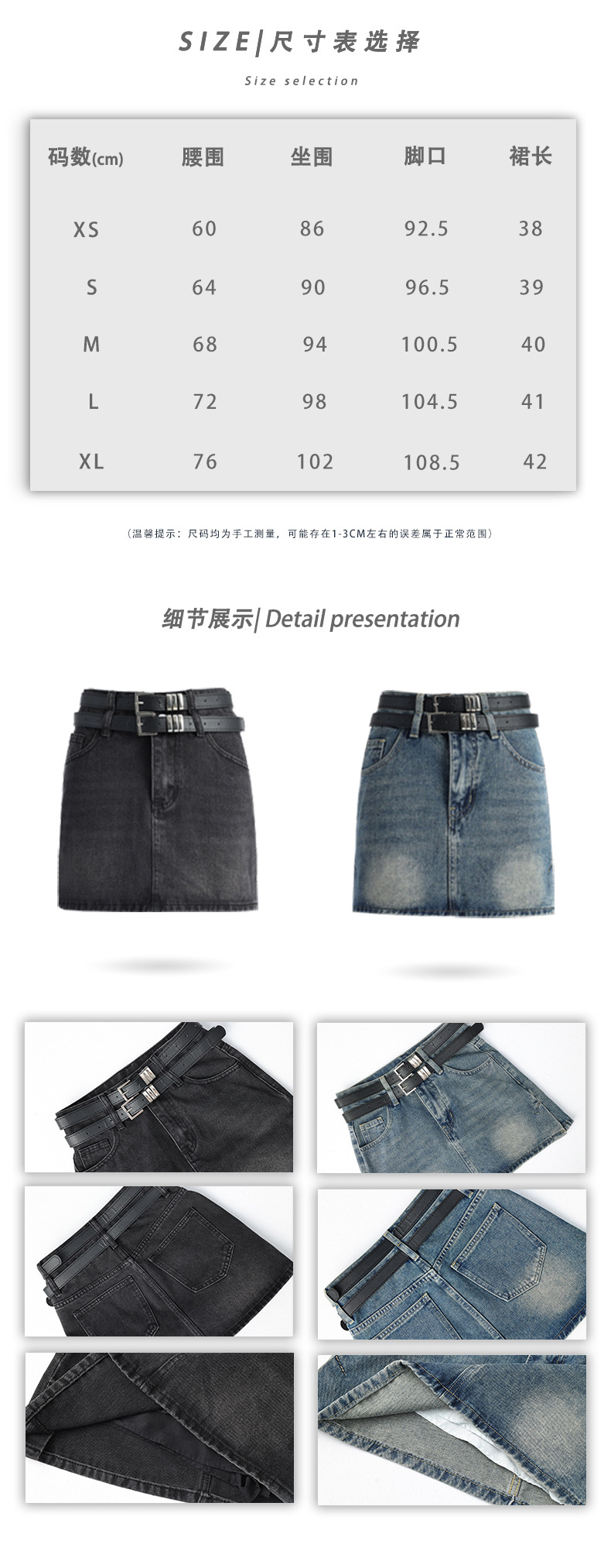 25 ! (벨트 포함) | 여성용 더블 벨트 데님 스커트, 힙 커버 스커트, 새로운 스타일