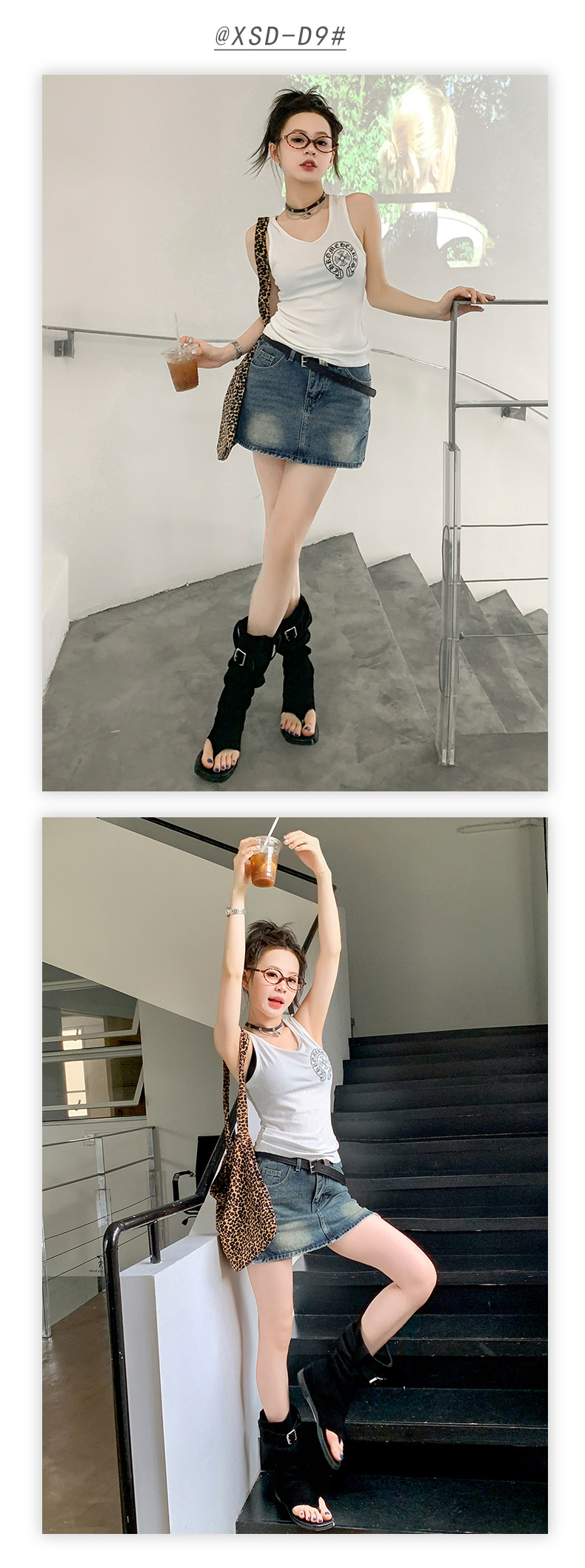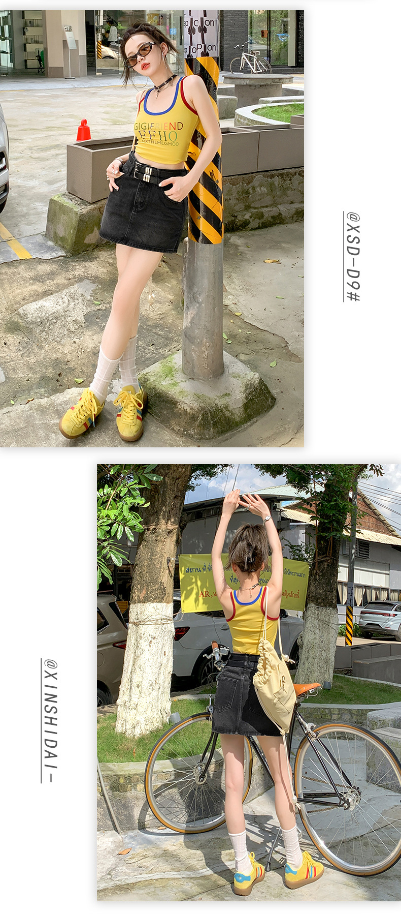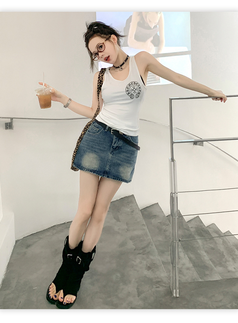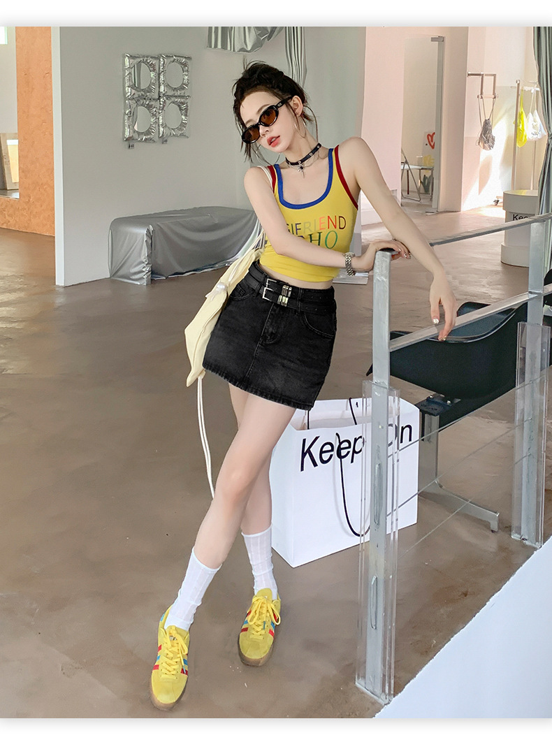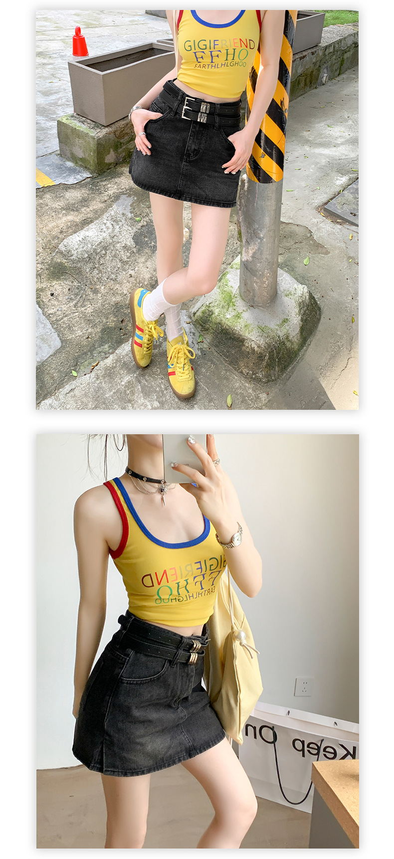 25 ! (벨트 포함) | 여성용 더블 벨트 데님 스커트, 힙 커버 스커트, 새로운 스타일