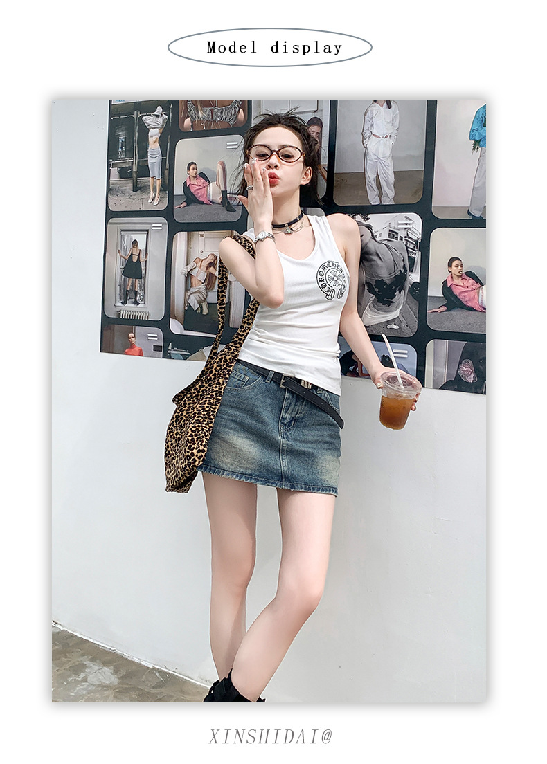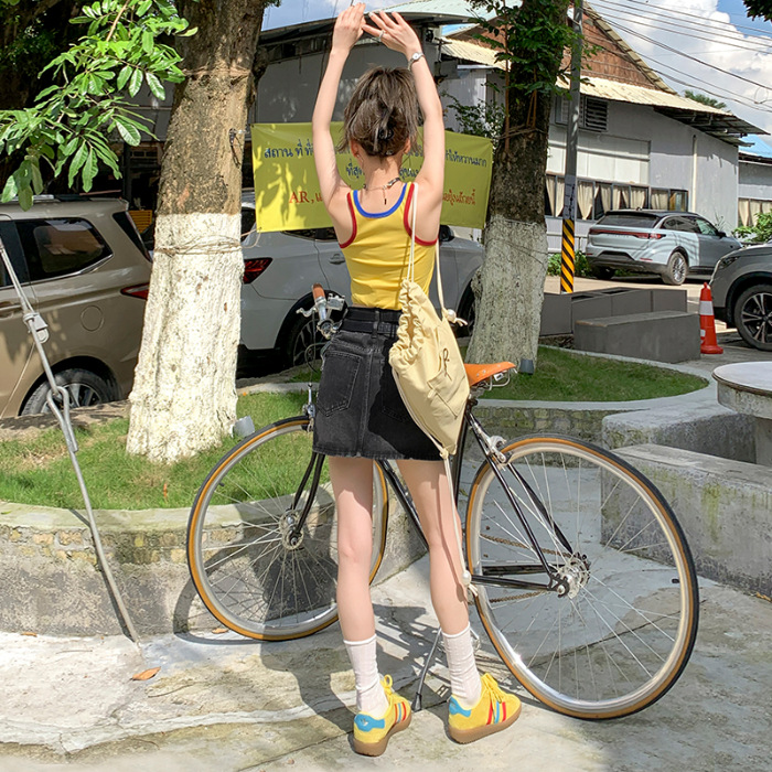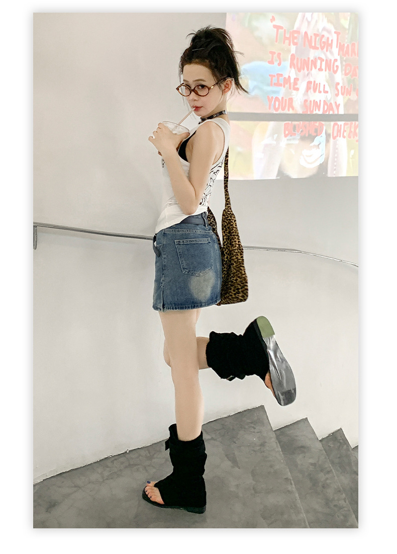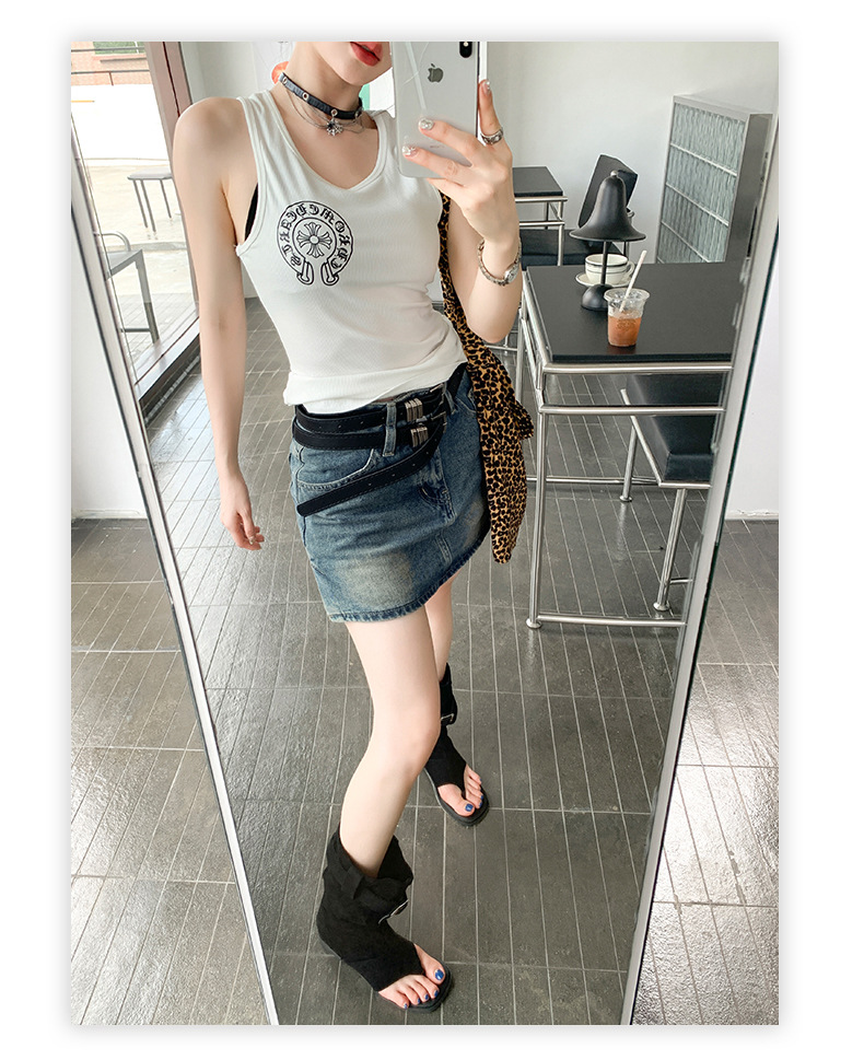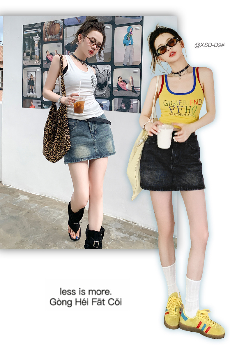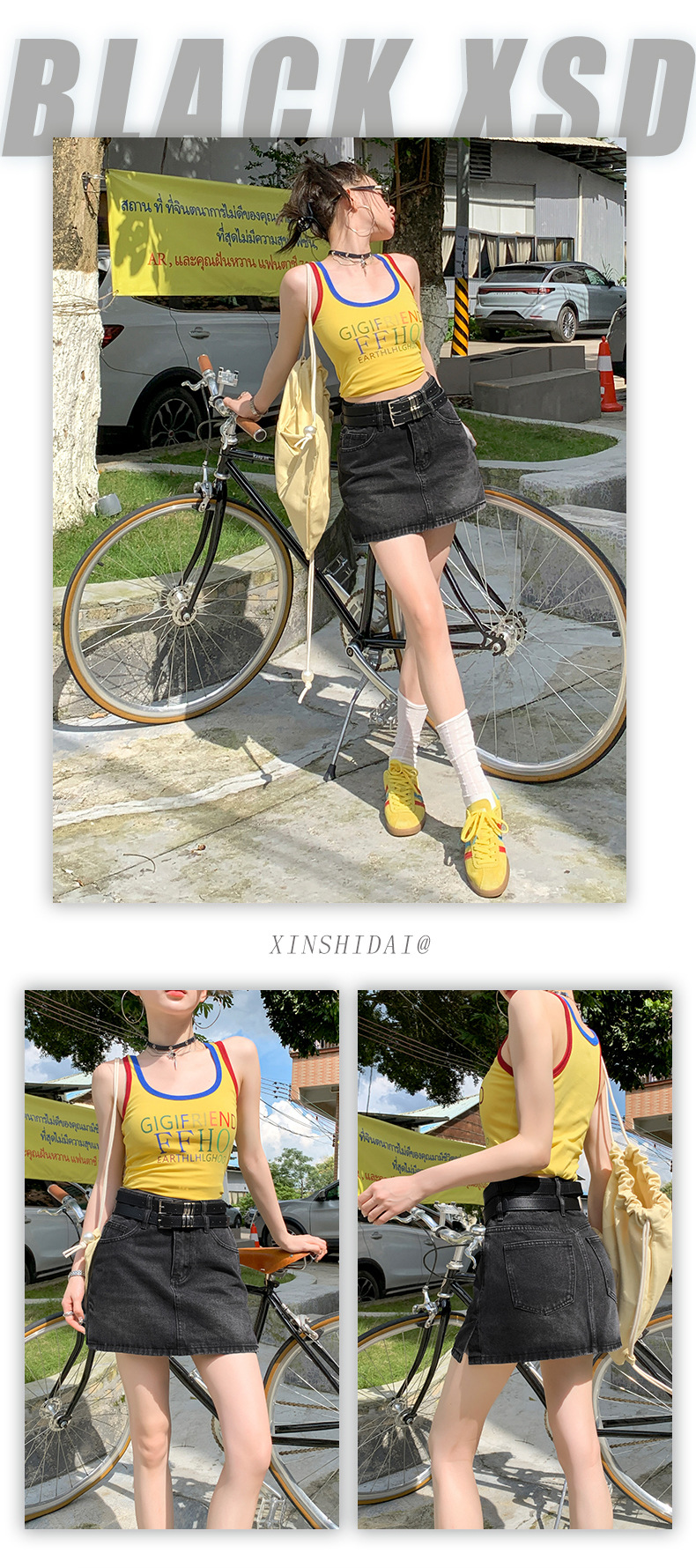 25 ! (벨트 포함) | 여성용 더블 벨트 데님 스커트, 힙 커버 스커트, 새로운 스타일