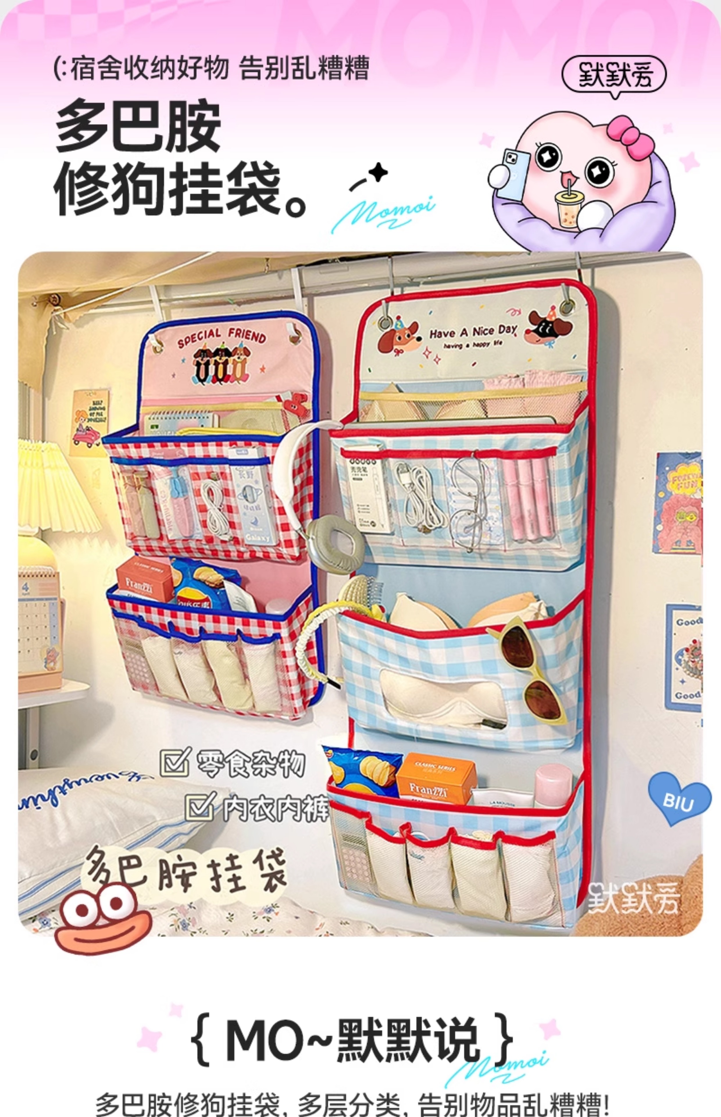 조용히 사랑 도파민 기숙사 침대 옆 보관 가방 벽걸이 형 접이식 속옷 팬티 스낵 도어 교수형 가방