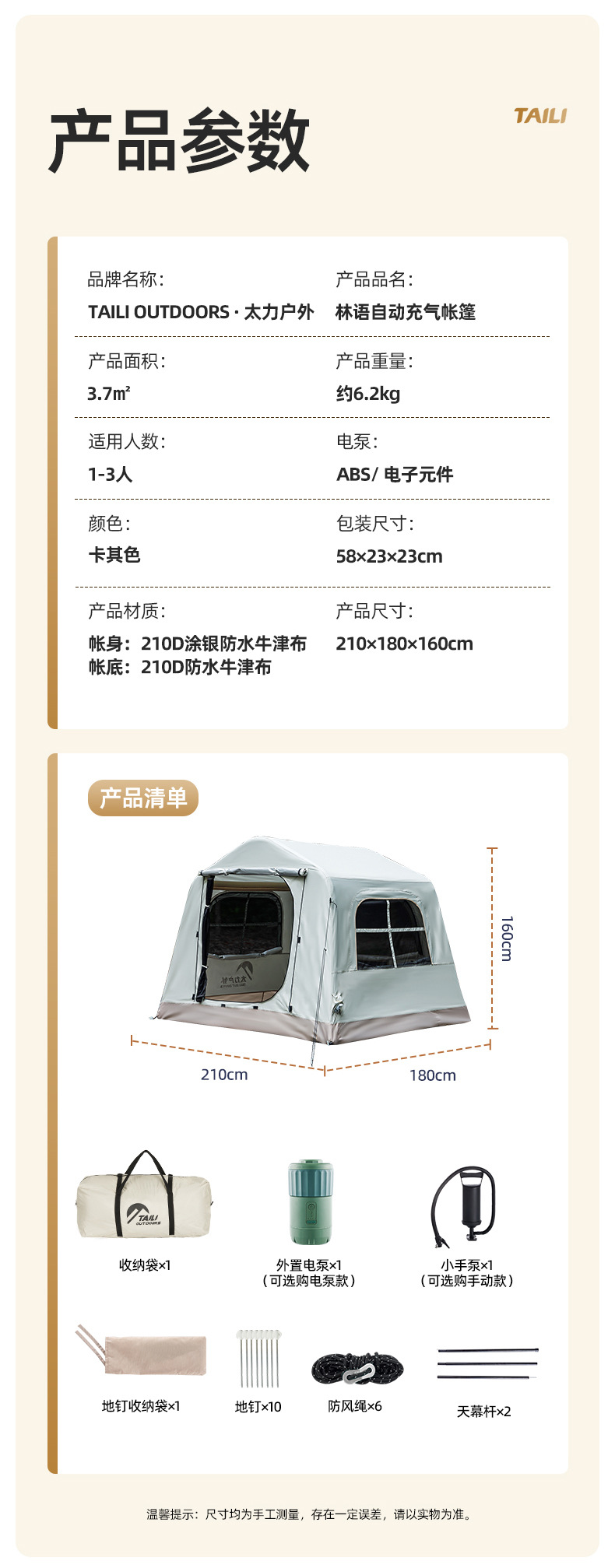 Taili Linyu 텐트 야외 휴대용 접이식 캠핑 밤새도록 비 방지 캠핑 장비 자동 차양 야외