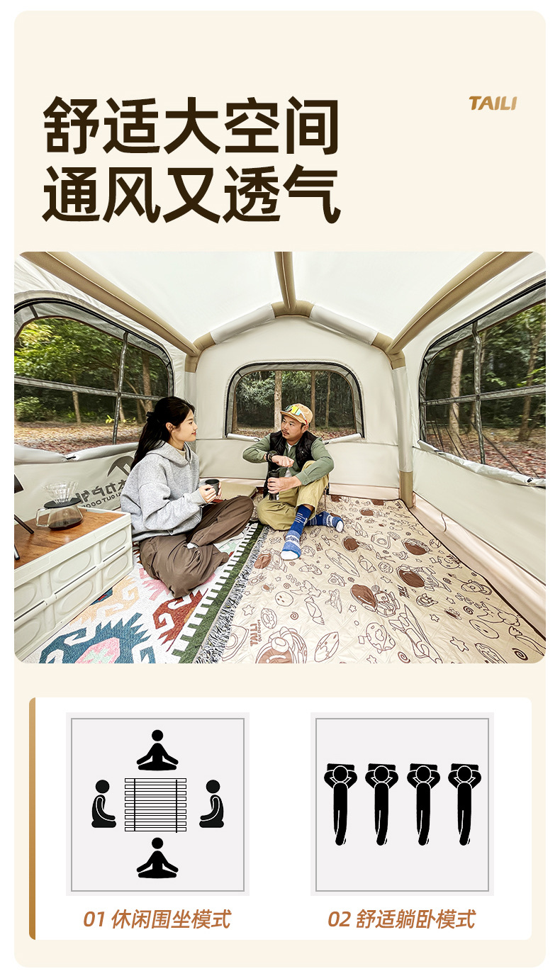 Taili Linyu 텐트 야외 휴대용 접이식 캠핑 밤새도록 비 방지 캠핑 장비 자동 차양 야외스토어 가기