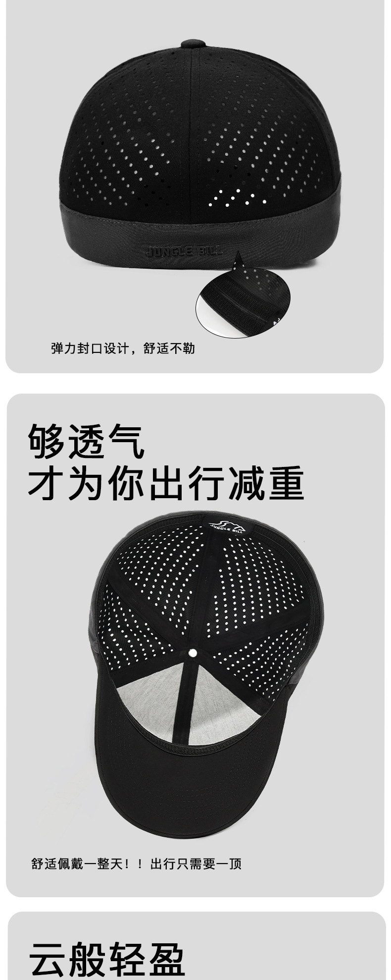 정글빌 여름 야구모자 풀클로즈드 탄성 차양모자 배색 통기성 속건 방수 챙모자 해외배송