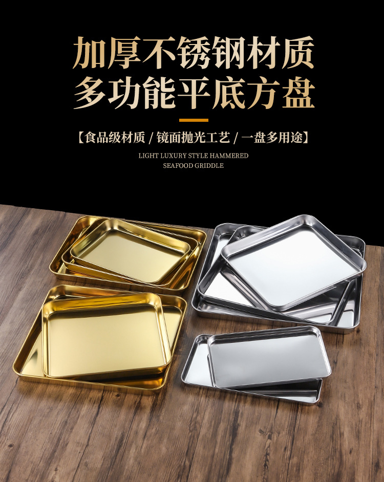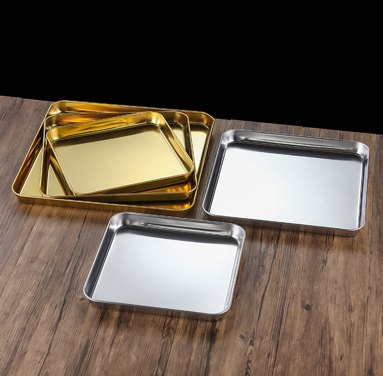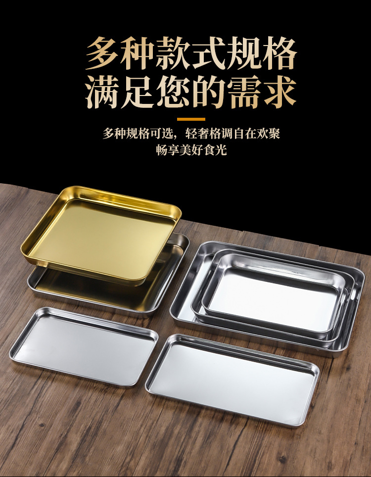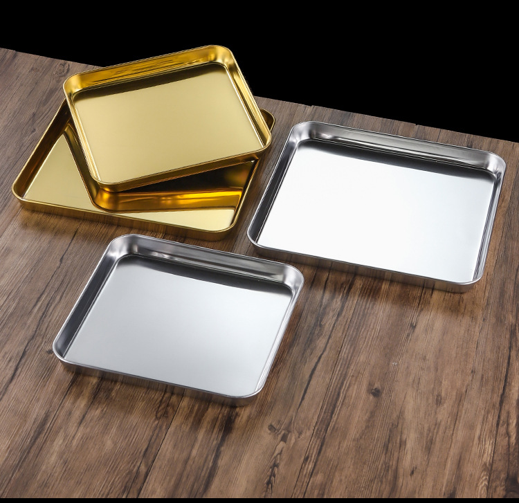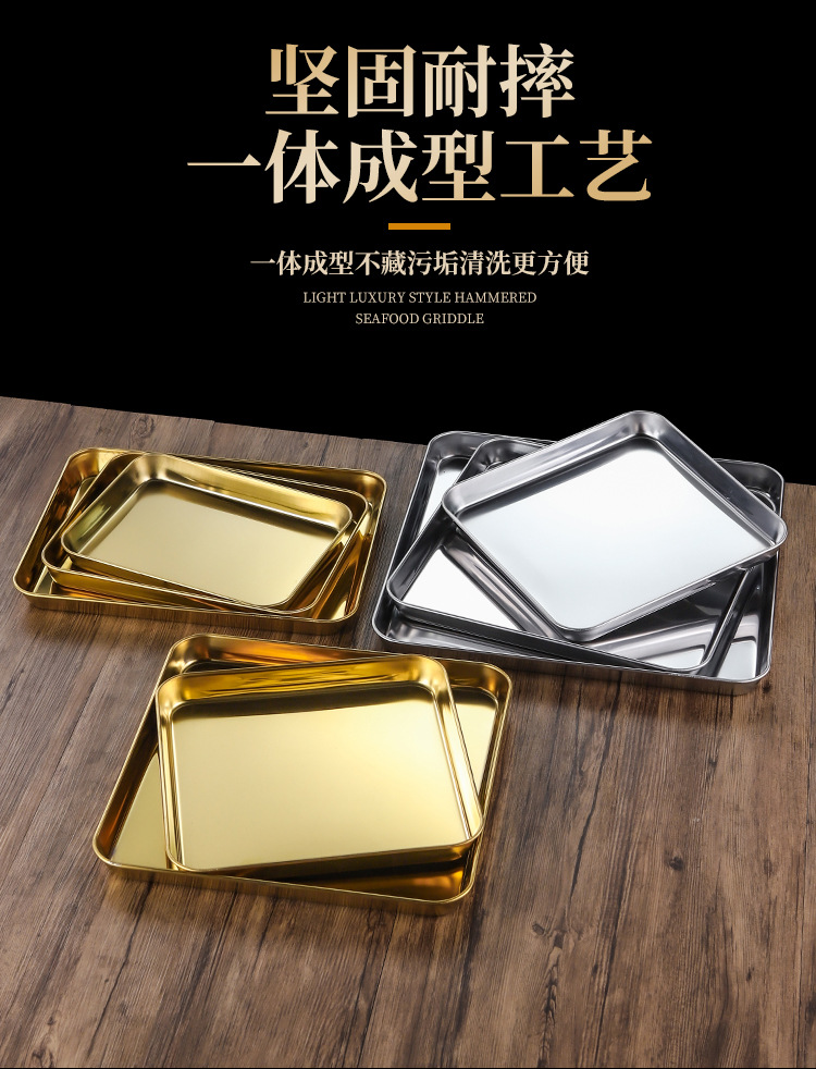 한국 스테인레스 스틸 직사각형 트레이 디너 플레이트 사각형 플레이트 바베큐 플레이트 플랫 소시지 플레이트 찐 밥 플레이트 과일 플레이트스토어 가기