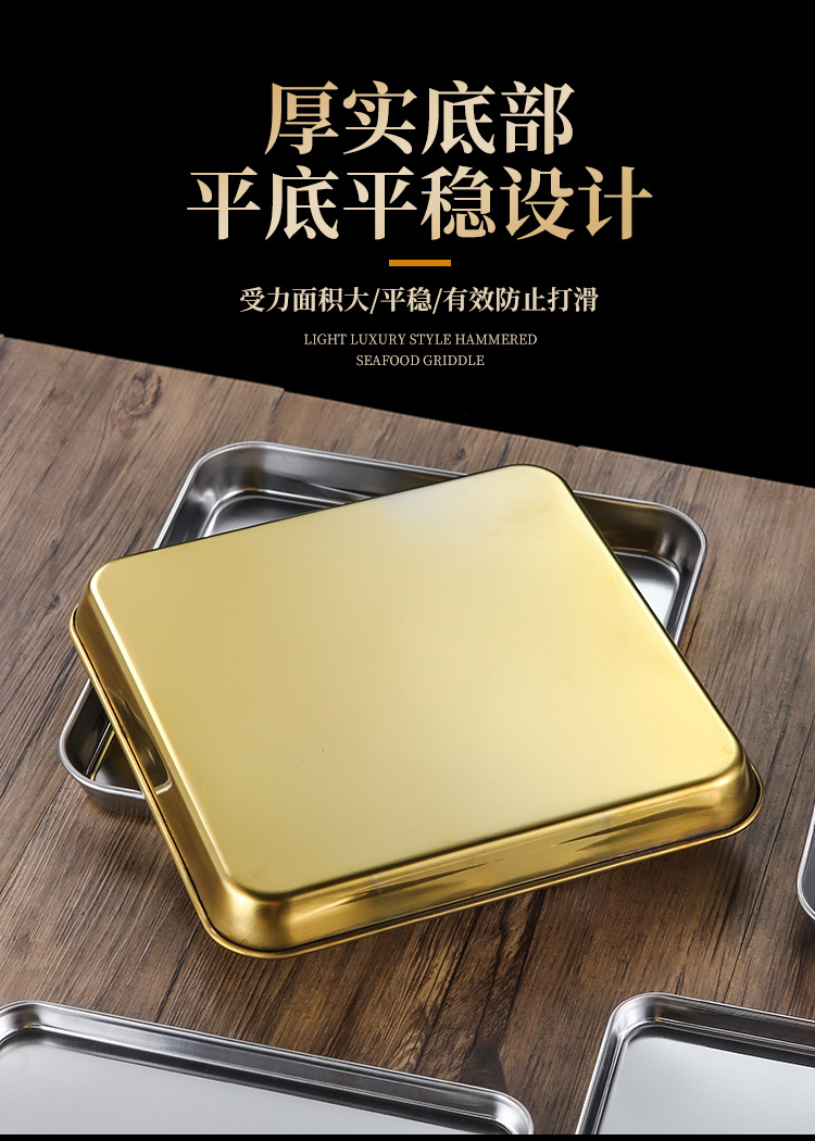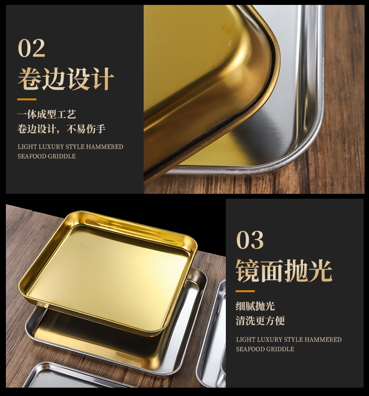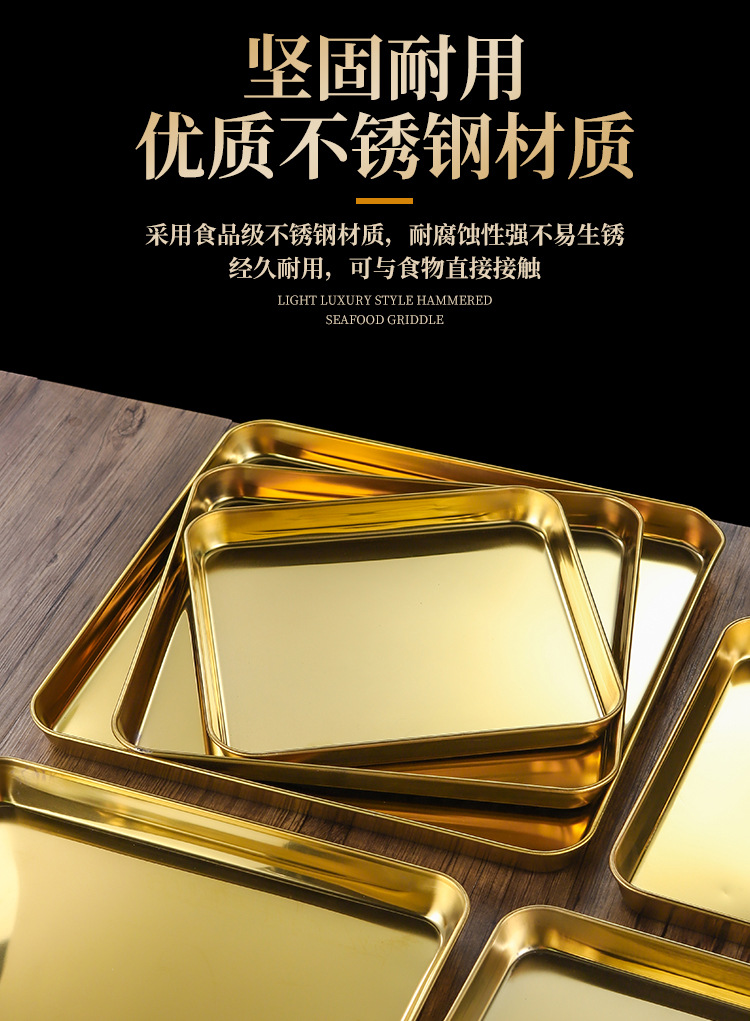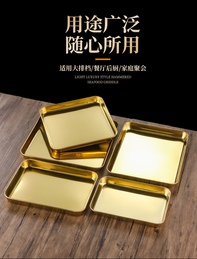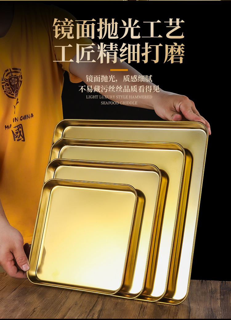 한국 스테인레스 스틸 직사각형 트레이 디너 플레이트 사각형 플레이트 바베큐 플레이트 플랫 소시지 플레이트 찐 밥 플레이트 과일 플레이트스토어 가기
