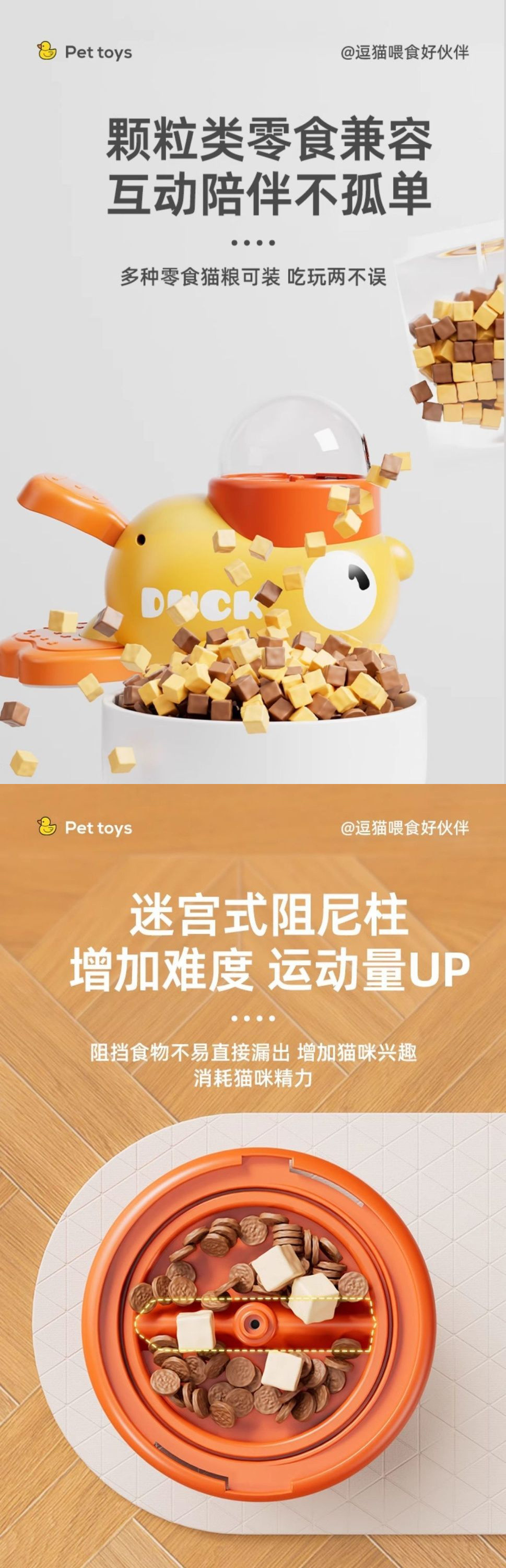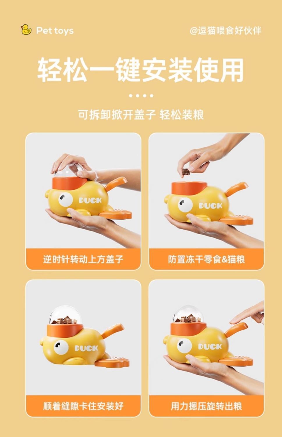 • 작은 노란 오리 애완동물 먹이통 [펠릿 간식, 회전식 먹이에 적합]