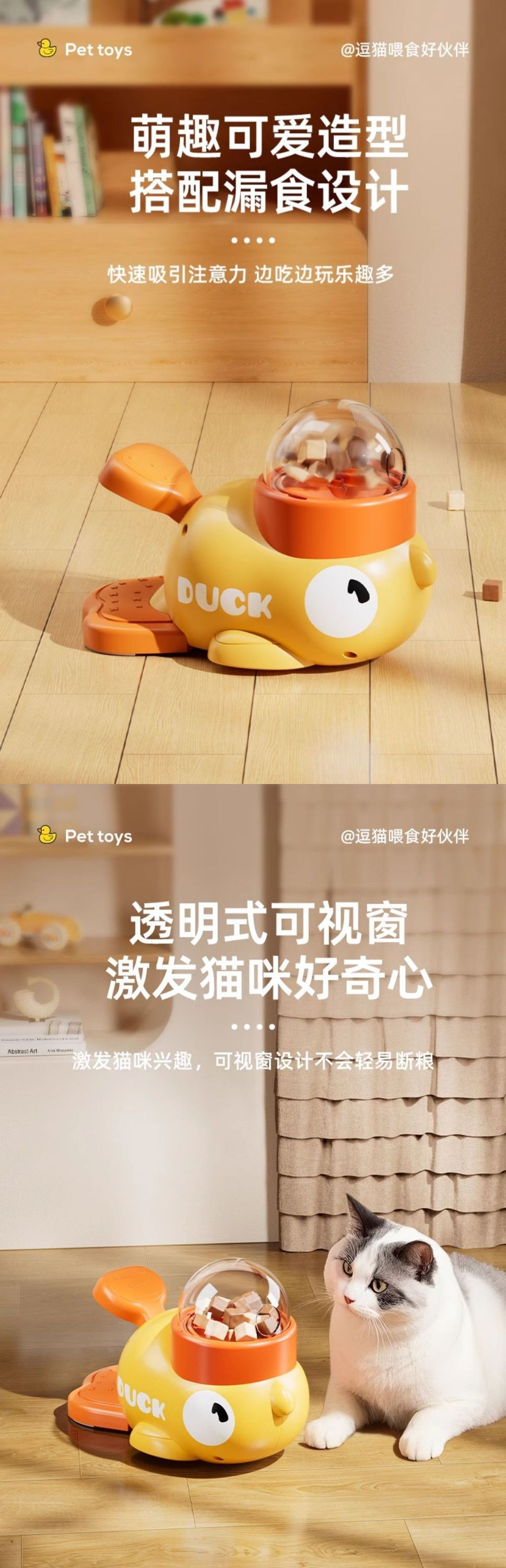 심심함 해소 고양이 놀리기 스틱, 애완동물 간식, 동결건조 노란 오리 발사기, 새끼 고양이 먹이 흘리기 장난감, 개와 고양이 동결건조 장난감스토어 가기