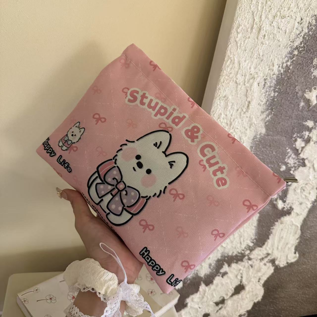 핑크 웨스트 하이랜드 클러치 백, 대용량 휴대용 화장품 가방, 서양식 새로운 중국 스타일의 작은 향기로운 스타일의 고가 동전 지갑스토어 가기