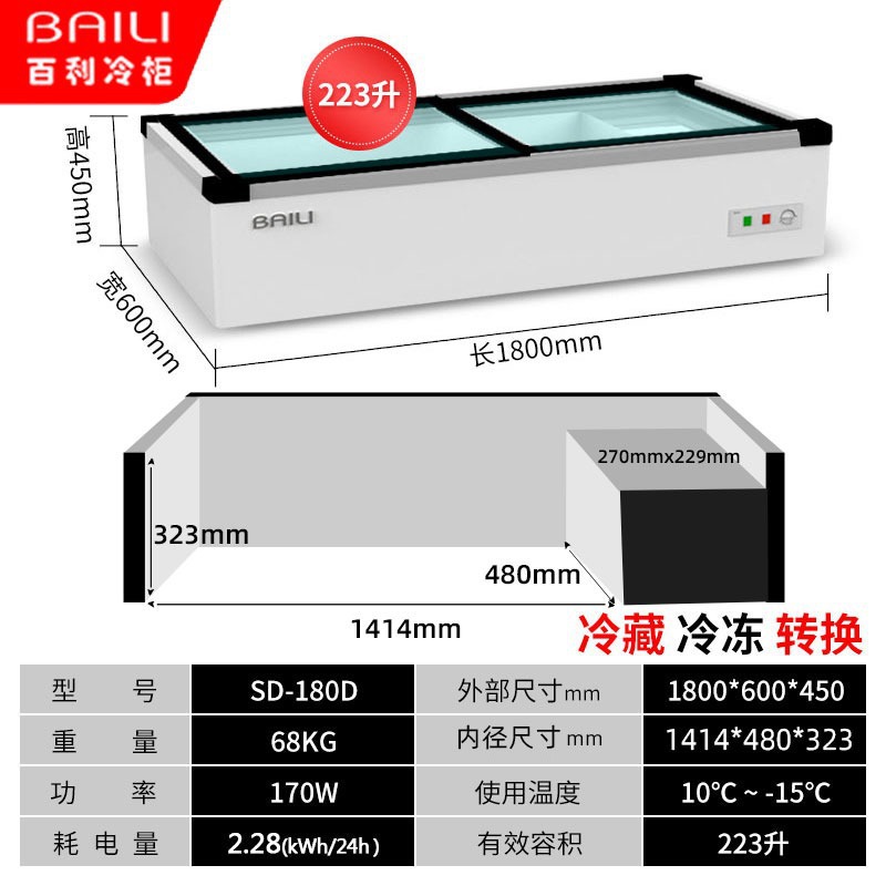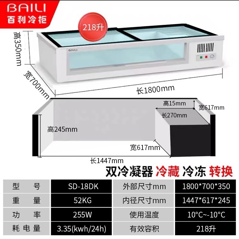 • 1.8m 창문 없음 + 3색 조명 + 냉장 및 냉동 (길이 1800*가로 700*높이 350mm)
