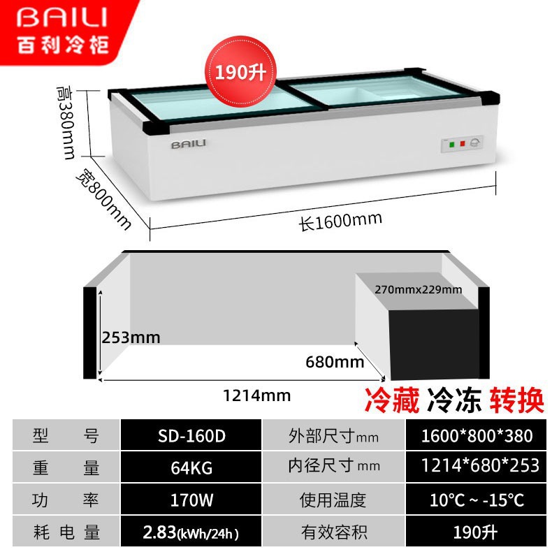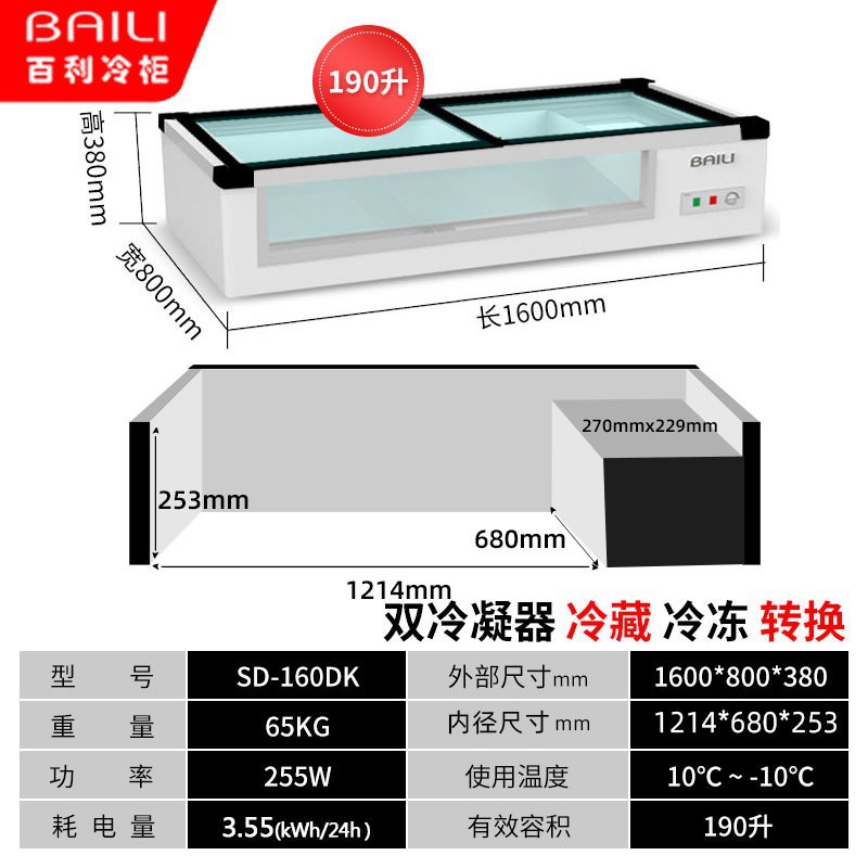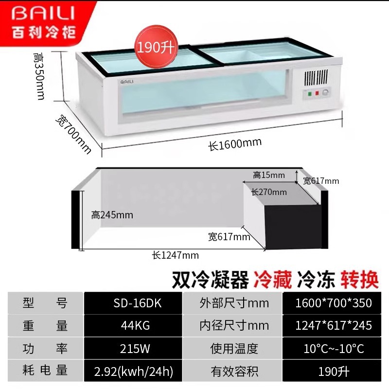 • 1.6m창형 + 3색조명 + 냉장 및 냉동 (길이 1600*가로 800*높이 380mm)