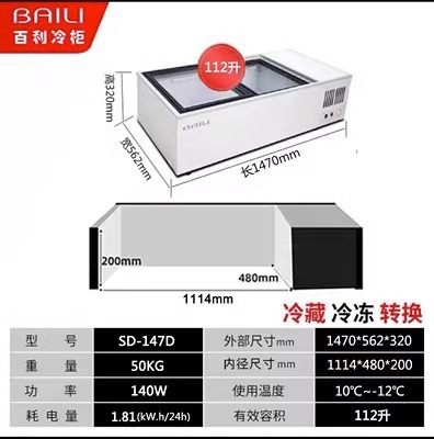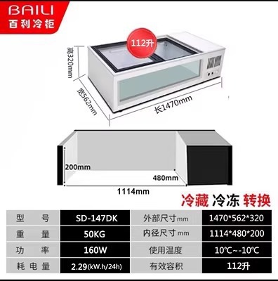 • 1.47m 창문 없음 + 3색 조명 + 냉장 및 냉동 (길이 1470*가로 562*높이 320mm)