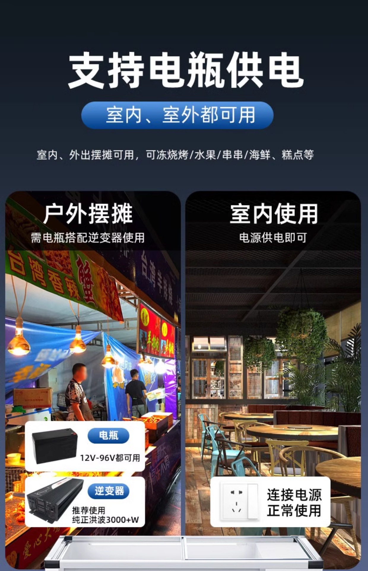 • 2.5m 창문모델 + 3색조명 + 냉장 및 냉동 (길이 2500*가로 1000*높이 380mm)