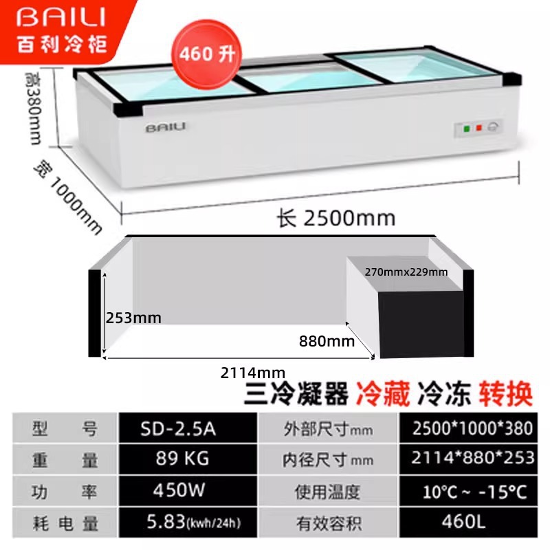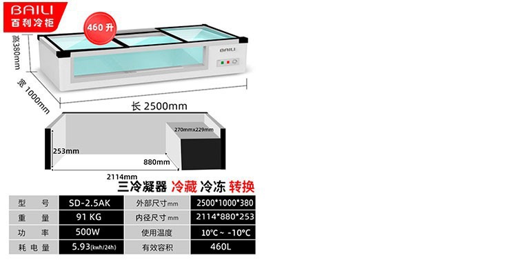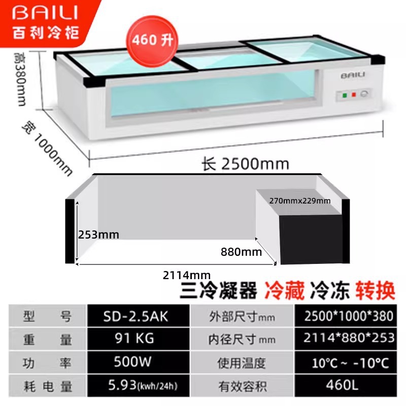 • 2.5m 창문 없음 + 3색 조명 + 냉장 및 냉동 (길이 2500*가로 1000*높이 380mm)