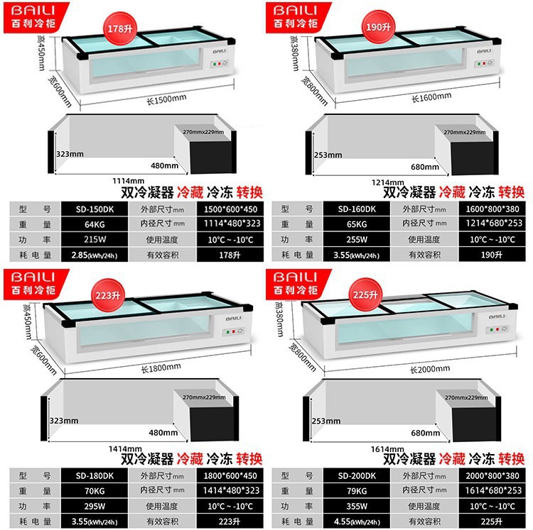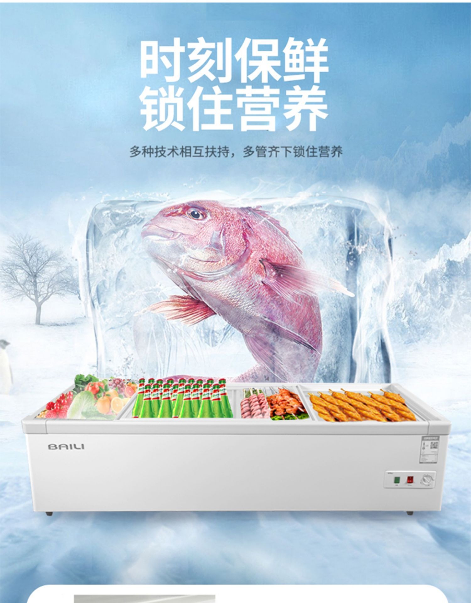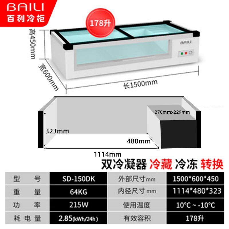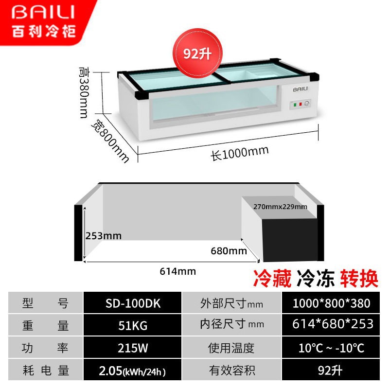 Bailey Ice 카운터형 냉장 바베큐 꼬치 디스플레이 캐비닛 소형 냉동 신선 유지 수평 삼륜차 스톨 냉장고스토어 가기