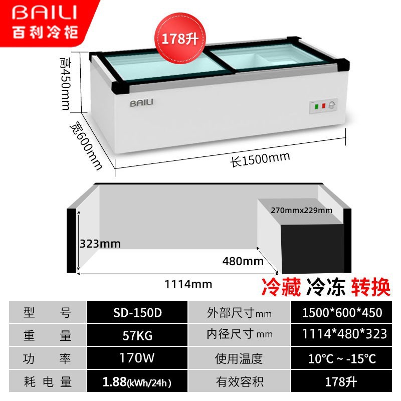 • 1.5m 창문 없음 + 3색 조명 + 냉장 및 냉동 (길이 1500*가로 600*높이 450mm)