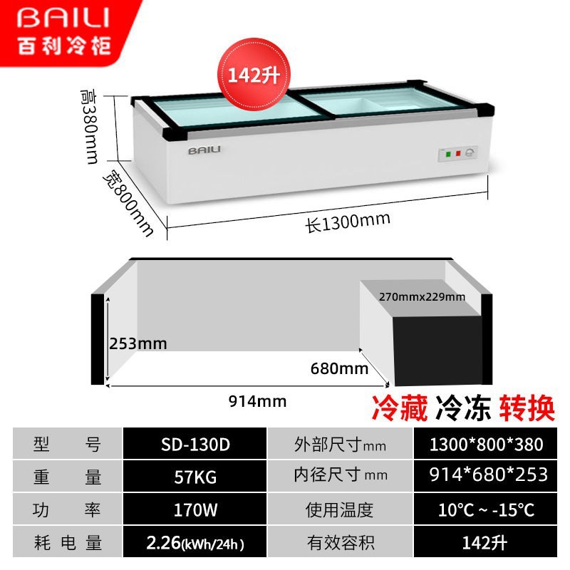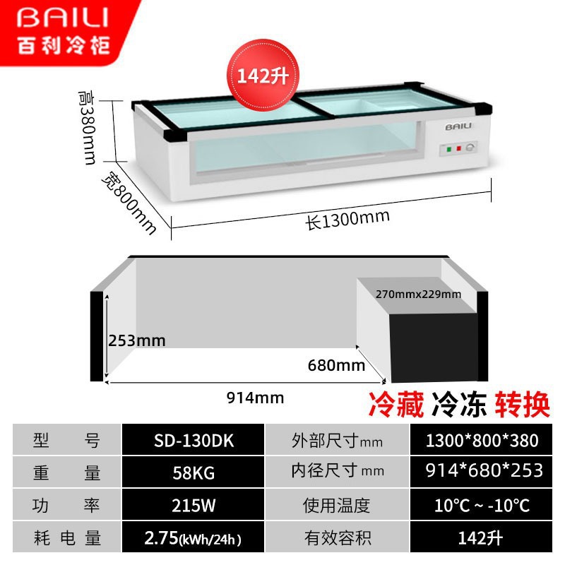 • 1.3m창형 + 3색조명 + 냉장 및 냉동 (길이 1300*가로 800*높이 380mm)