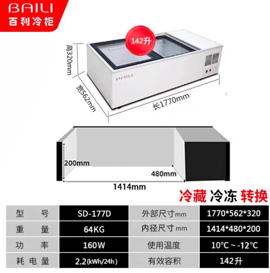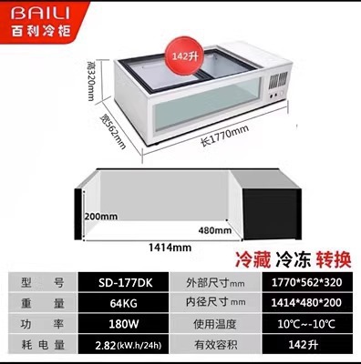 • 1.77m창형 + 3색조명 + 냉장 및 냉동 (길이 1770*가로 562*높이 320mm)