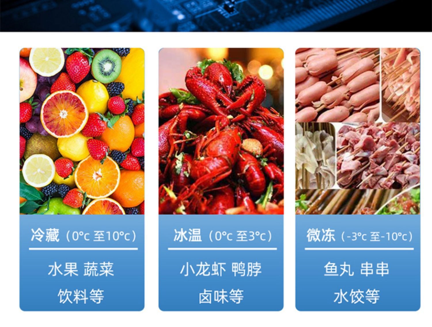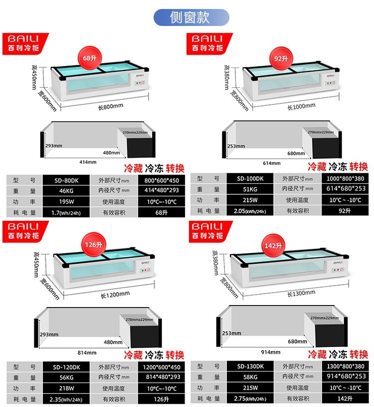 • 1.0m창형 + 3색조명 + 냉장 및 냉동 (길이 1000*가로 800*높이 380mm)