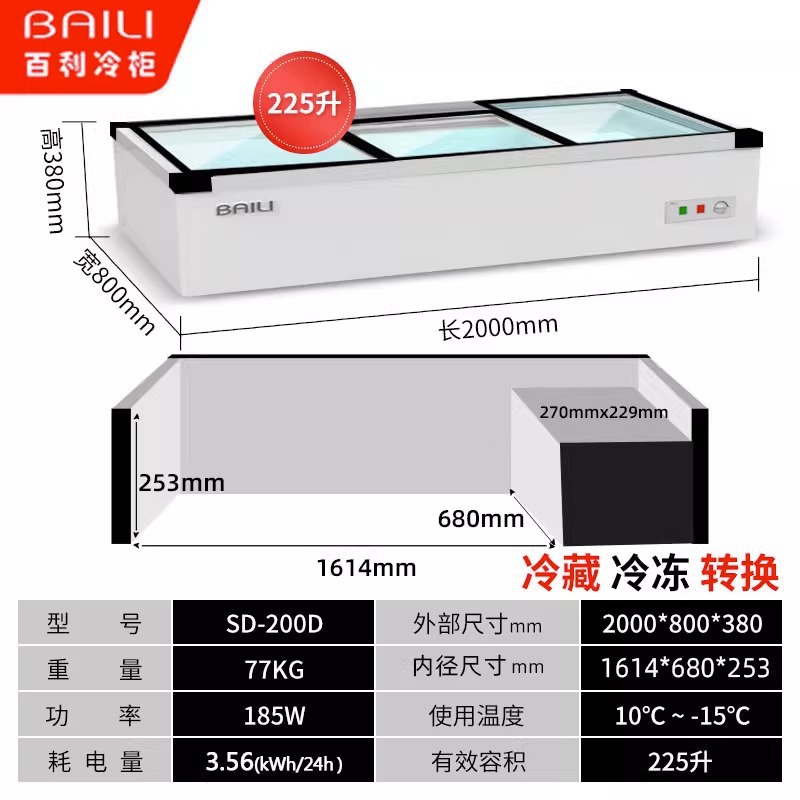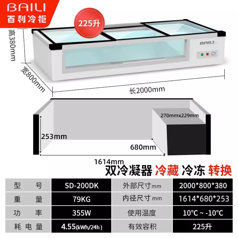 • 2.0m 창문 없음 + 3색 조명 + 냉장 및 냉동 (길이 2000*가로 800*높이 380mm)