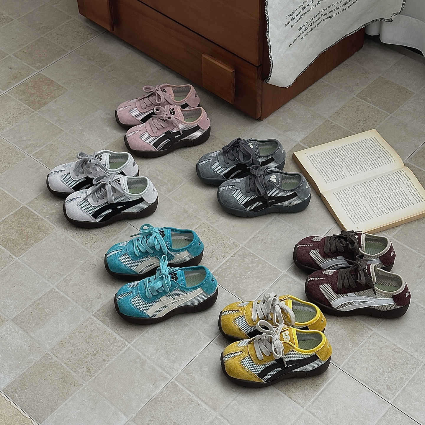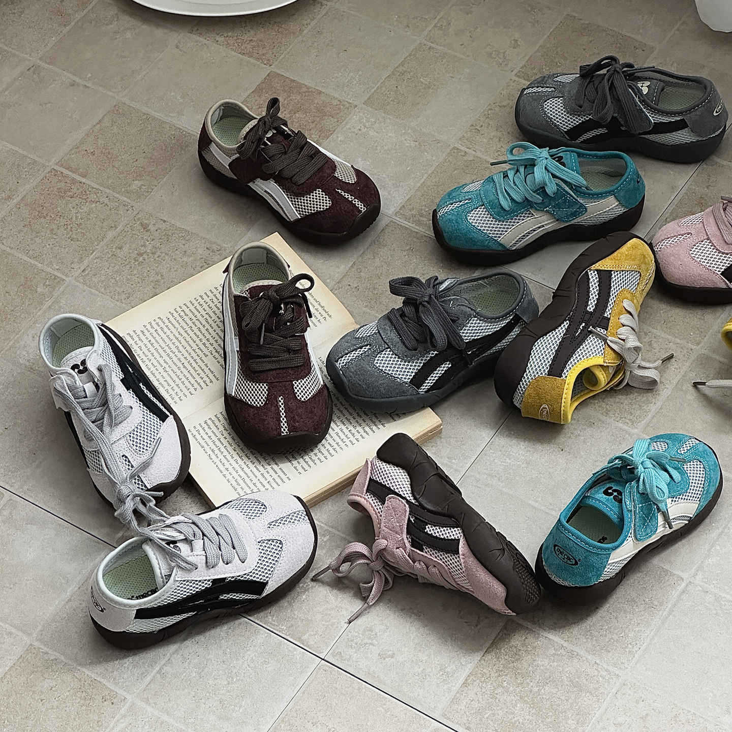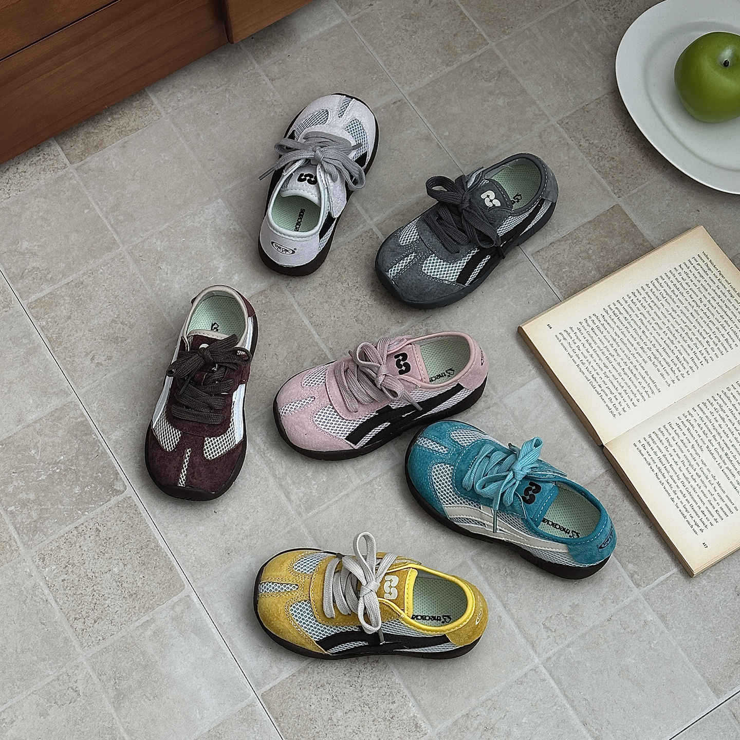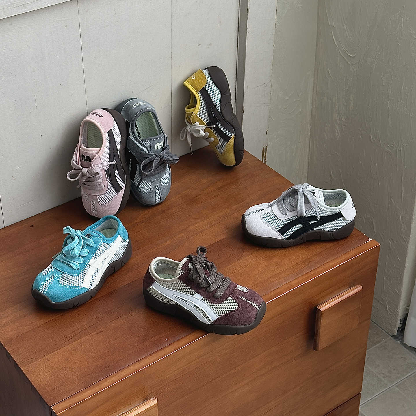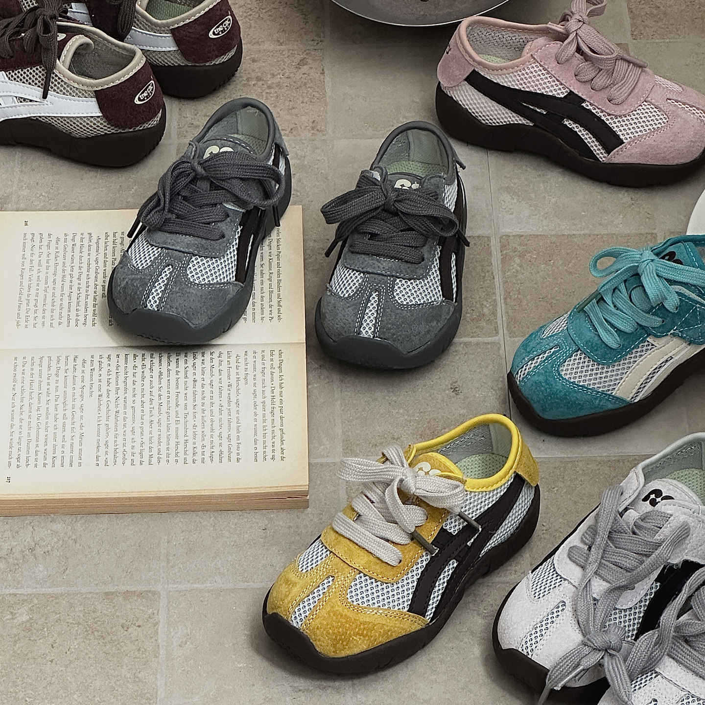 XSHX "기능성 운동화" 복고풍 어린이 단일 메쉬 통기성 스포츠 운동화 여름과 가을 미끄럼 방지 고무 밑창 소년과 소녀를위한