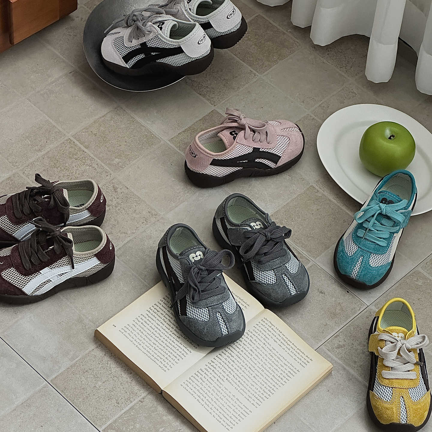 XSHX "기능성 운동화" 복고풍 어린이 단일 메쉬 통기성 스포츠 운동화 여름과 가을 미끄럼 방지 고무 밑창 소년과 소녀를위한스토어 가기