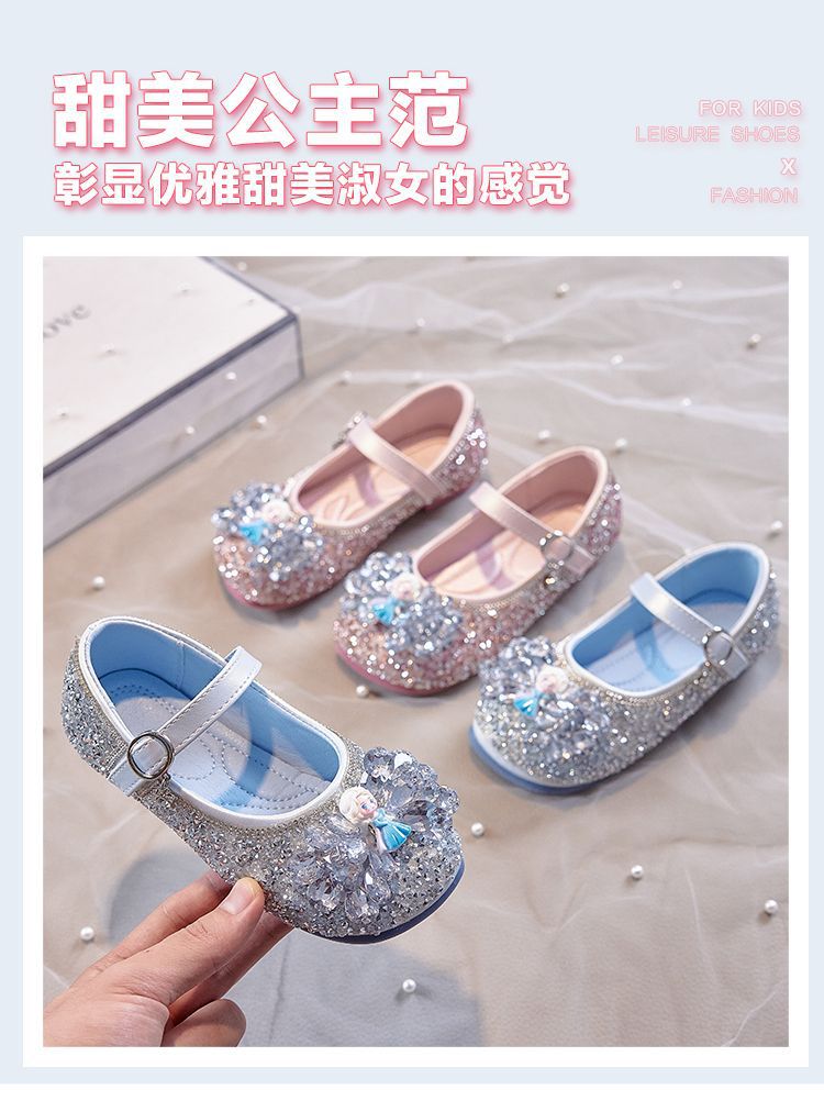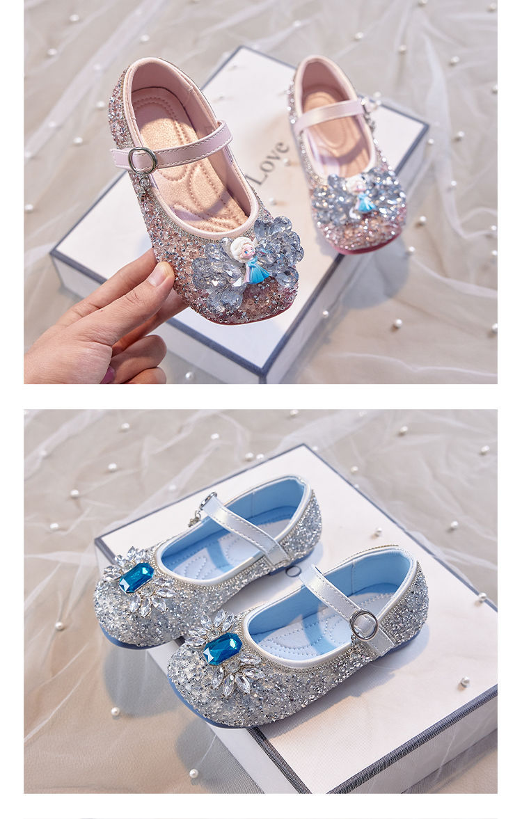 [11만개 이상의 호평] 어린이 공주 신발 크리스탈 슈즈 엘사 2025 봄 가을 신작 여아 가죽 신발 소프트