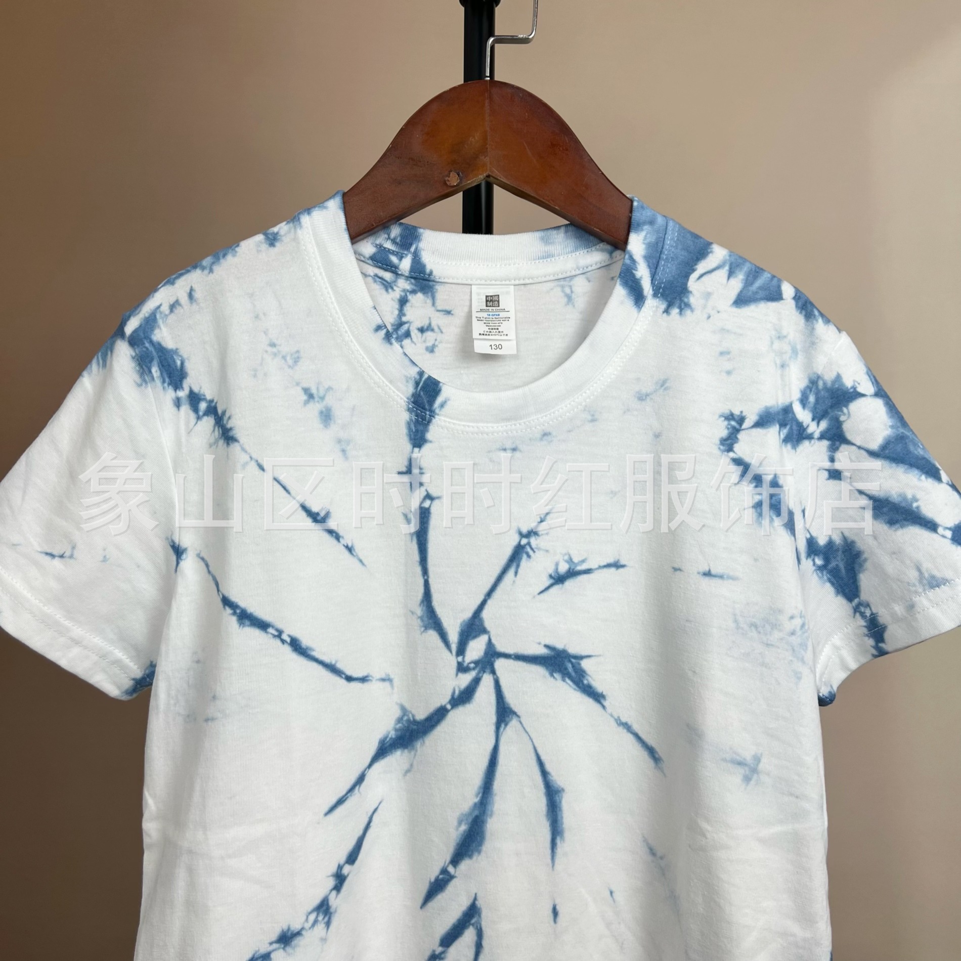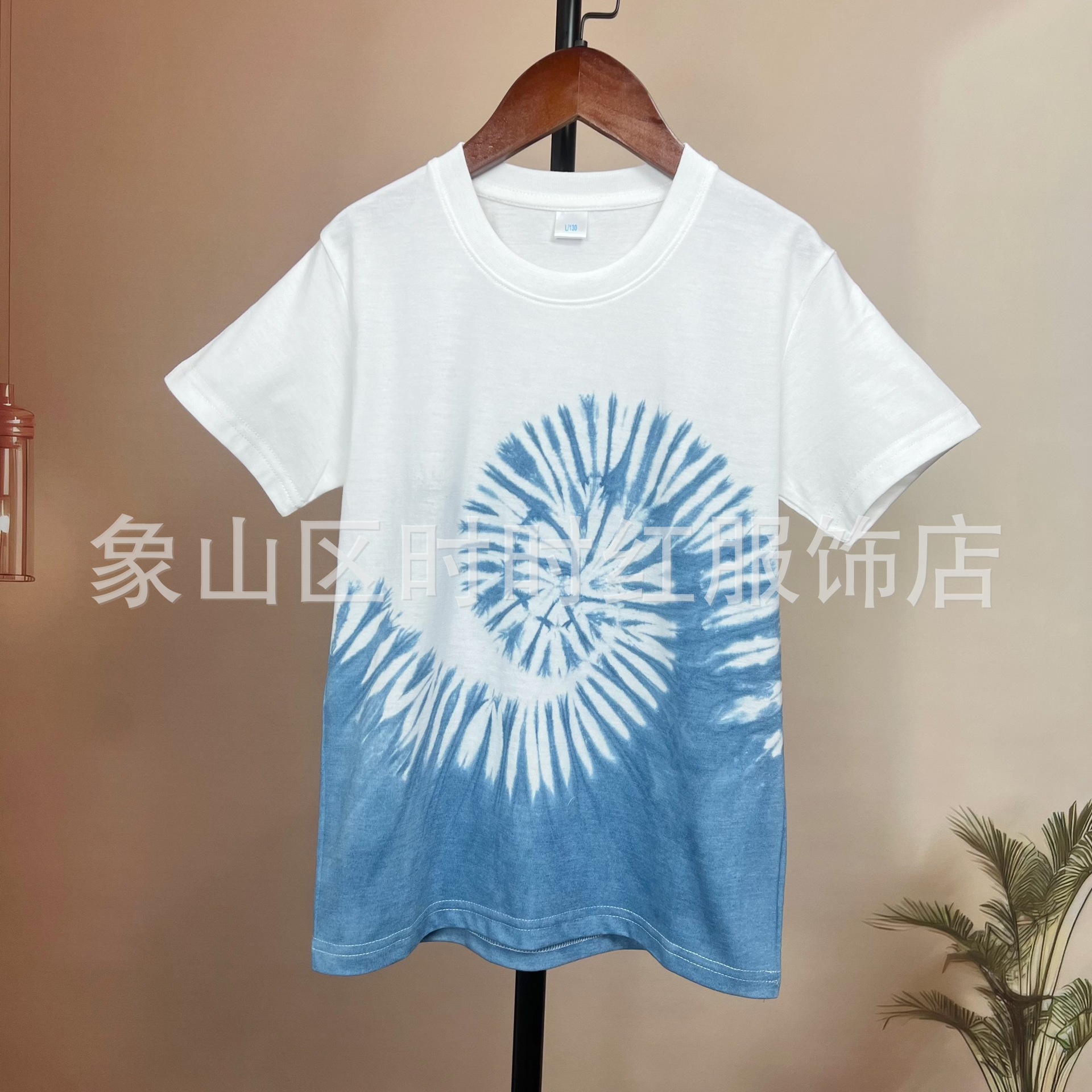 어린이 넥타이 염색 티셔츠 Yunnan Guizhou 수제 타이 염색 식물 염색 여름 반팔 아동용 의류 도매
