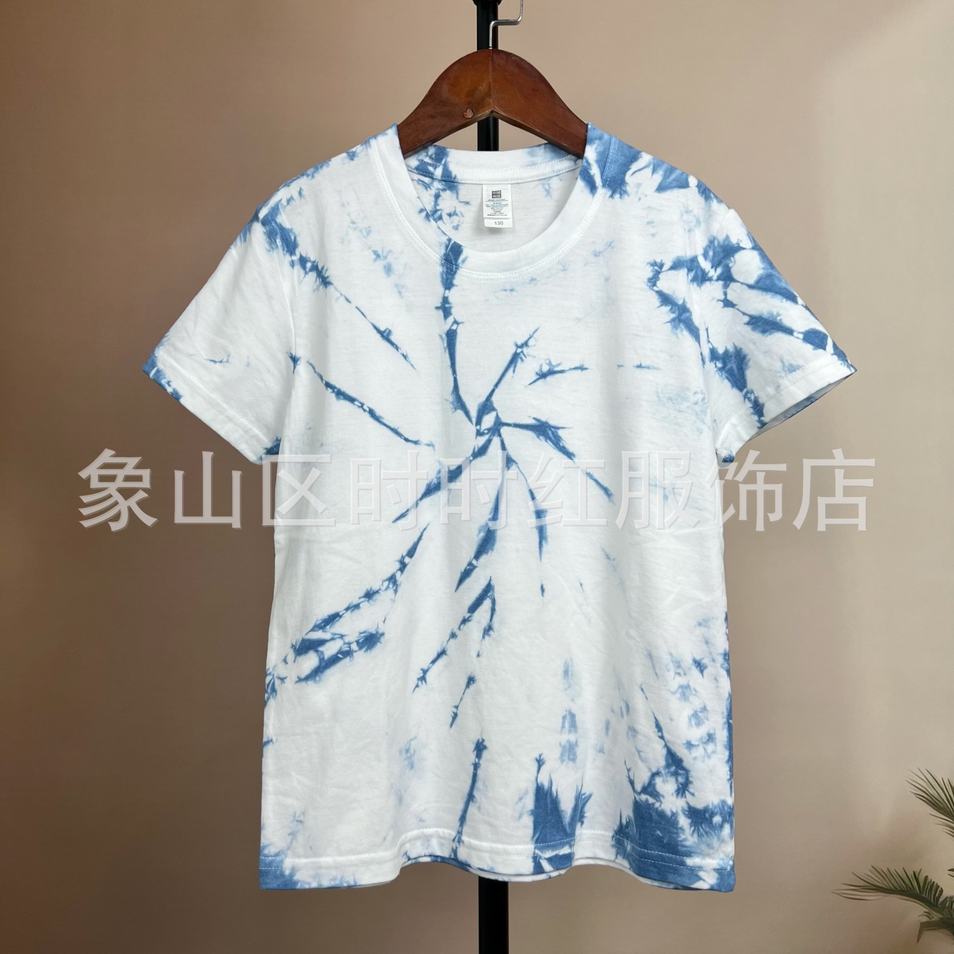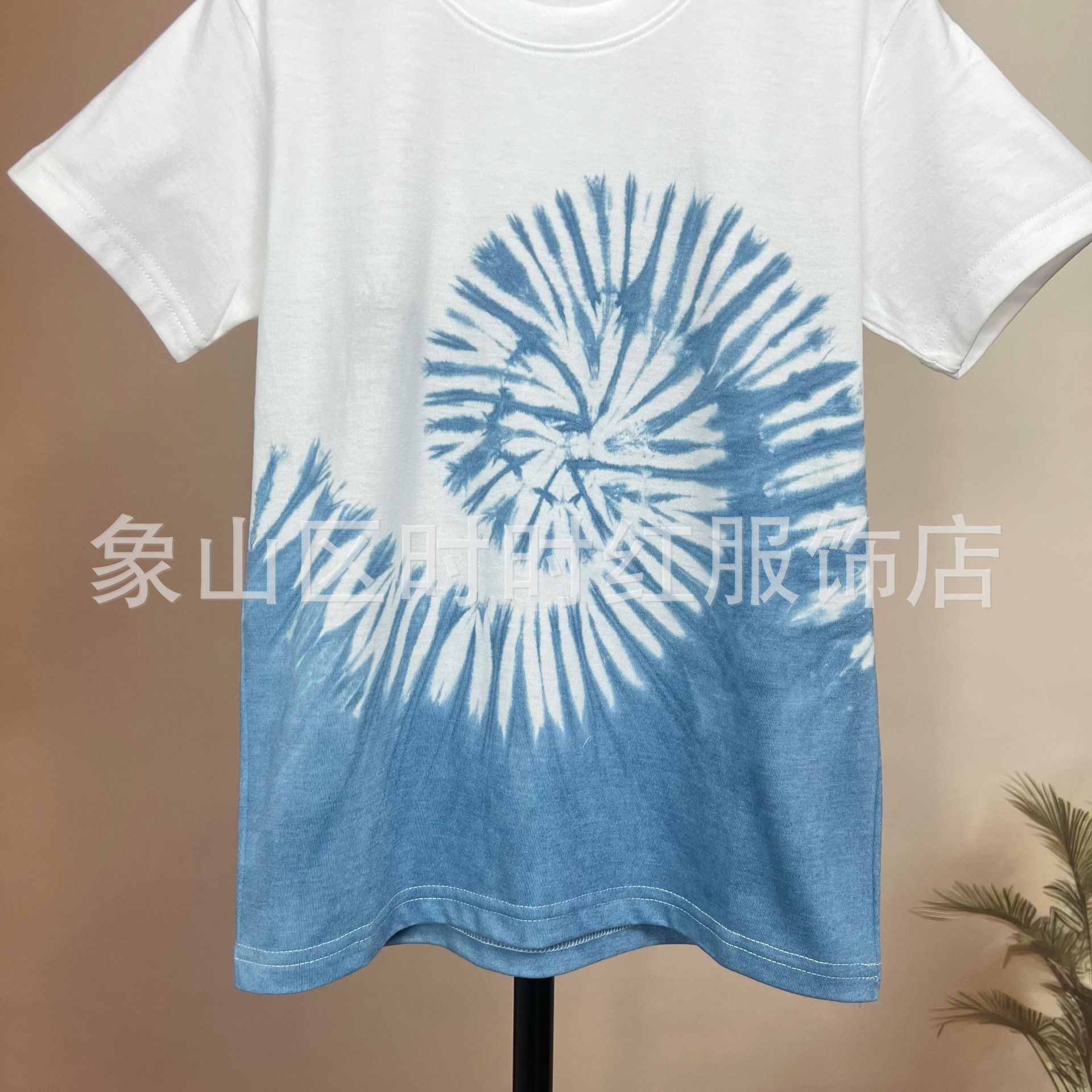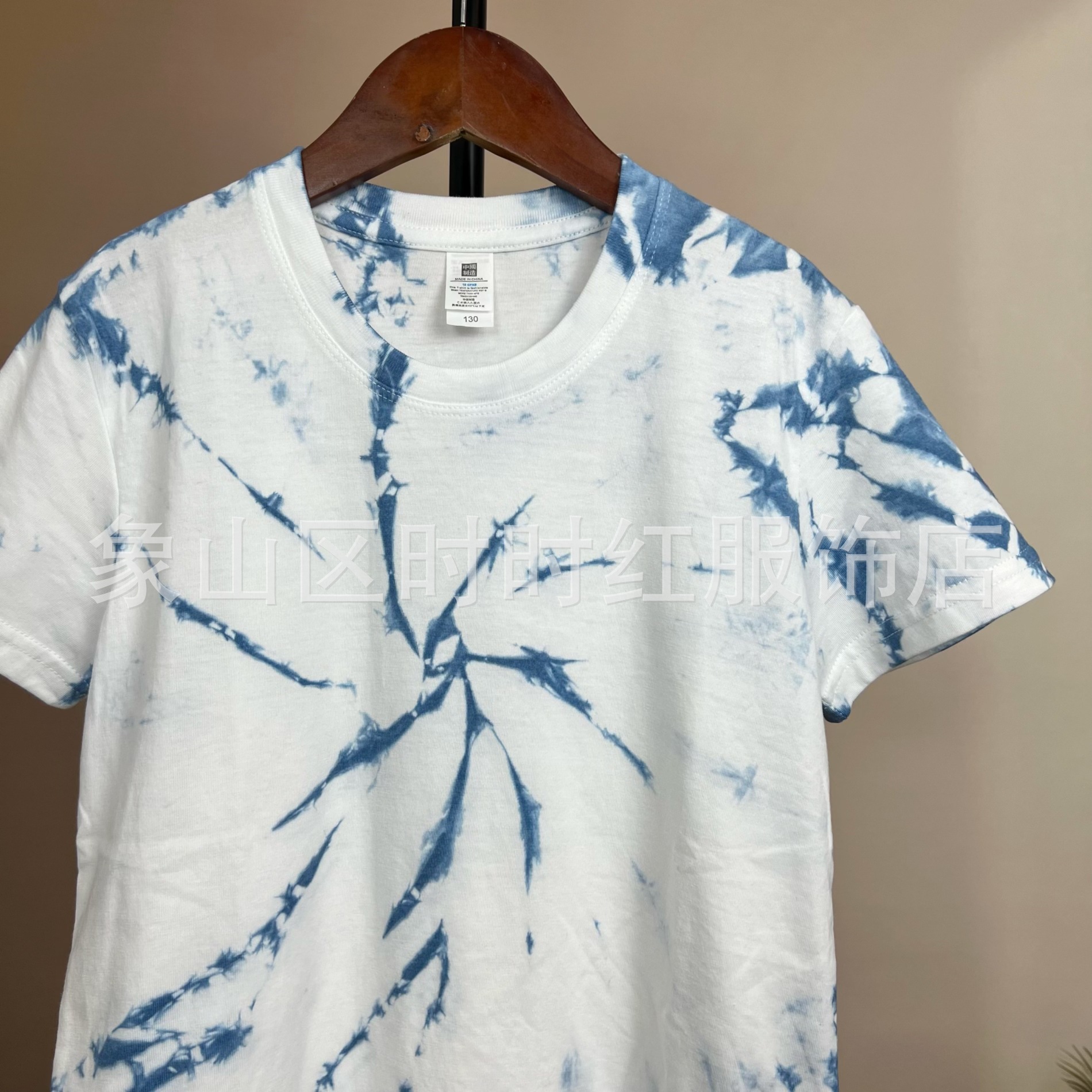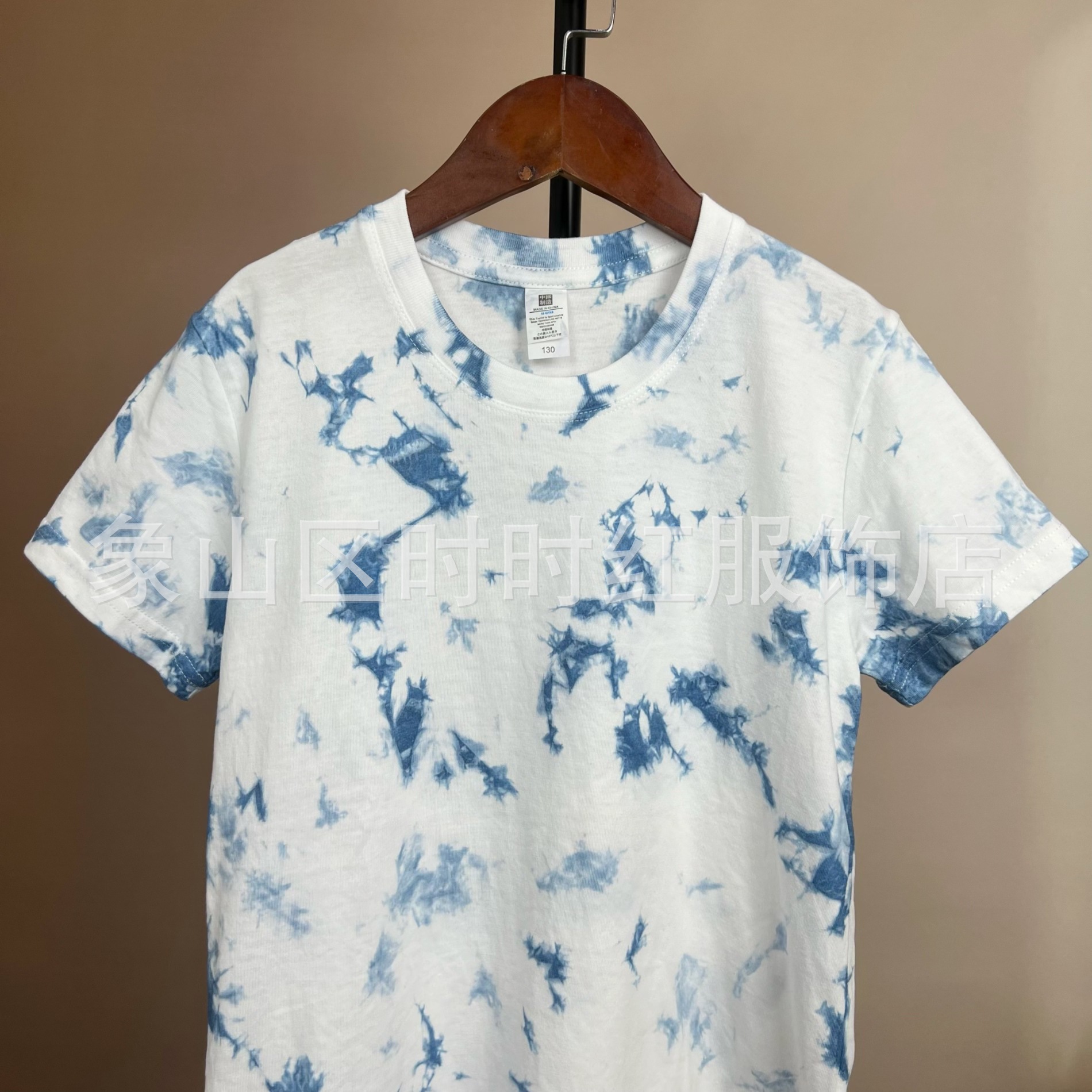 어린이 넥타이 염색 티셔츠 Yunnan Guizhou 수제 타이 염색 식물 염색 여름 반팔 아동용 의류 도매스토어 가기