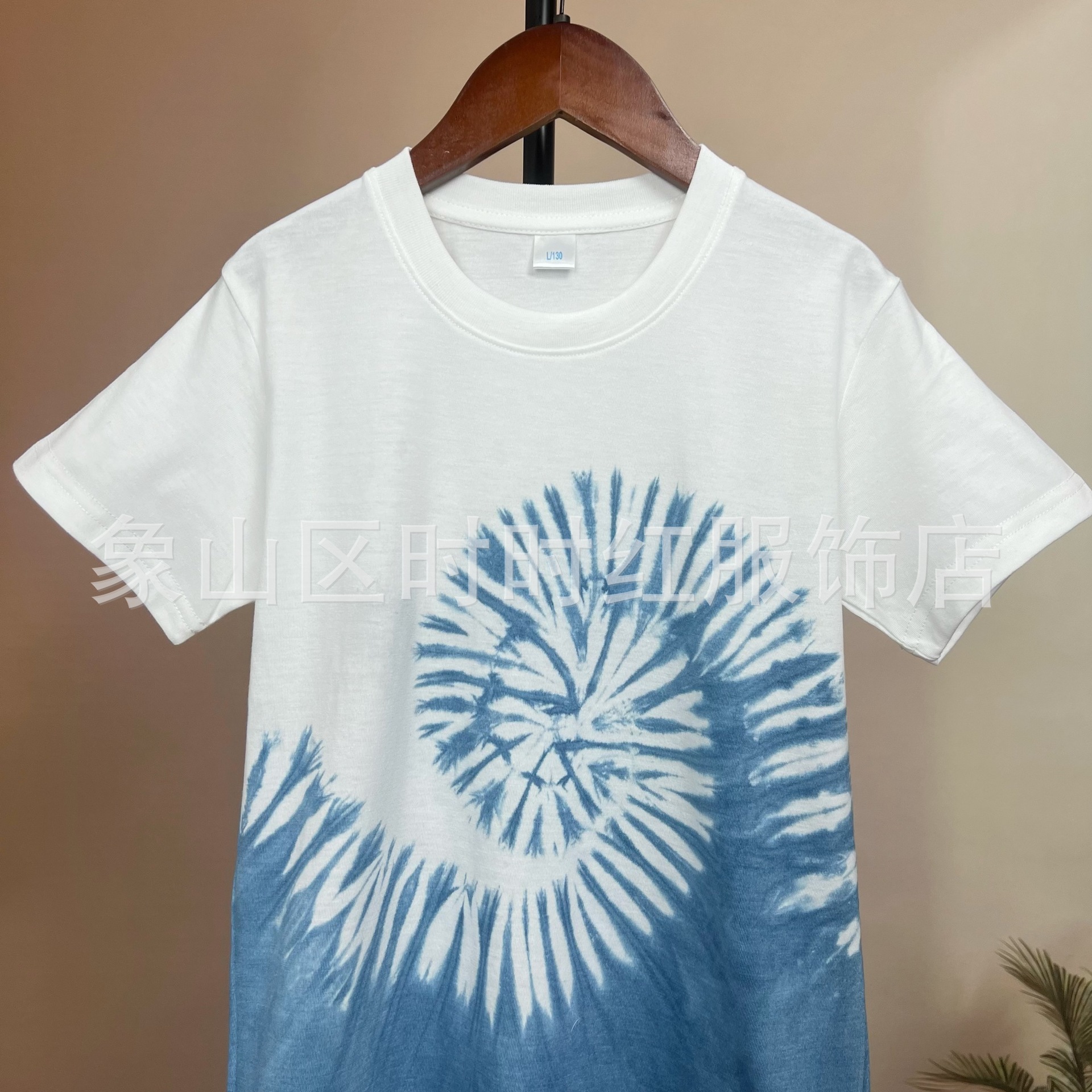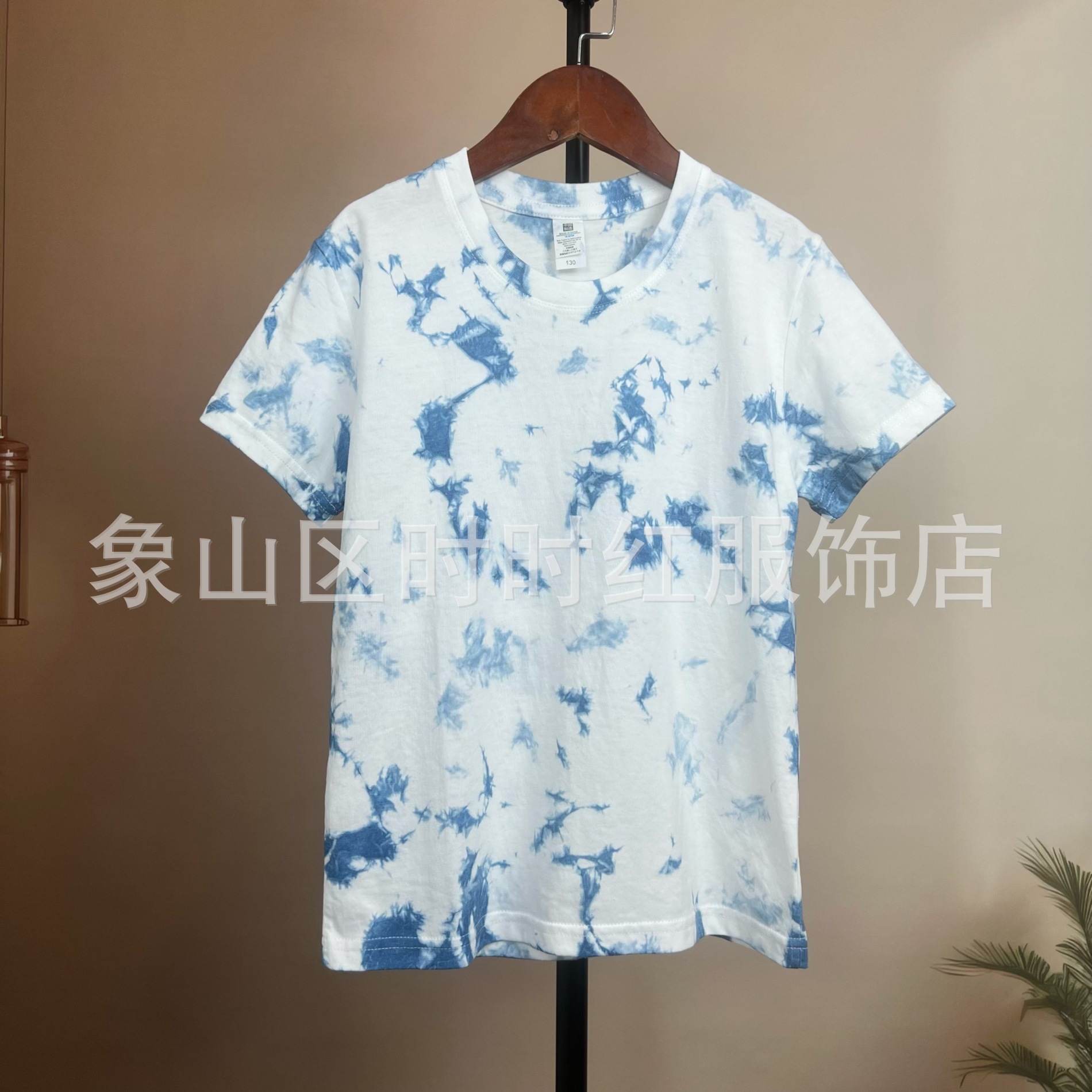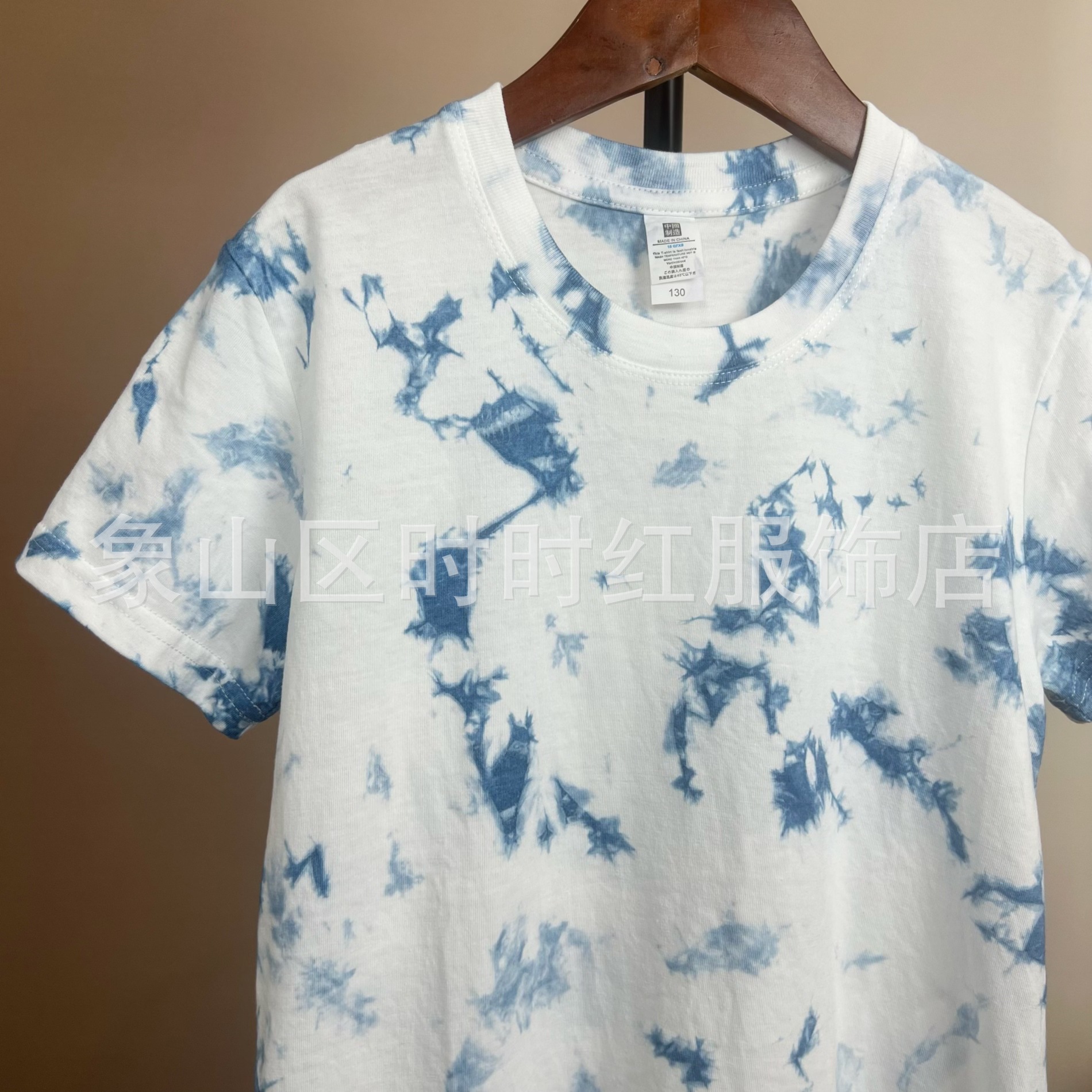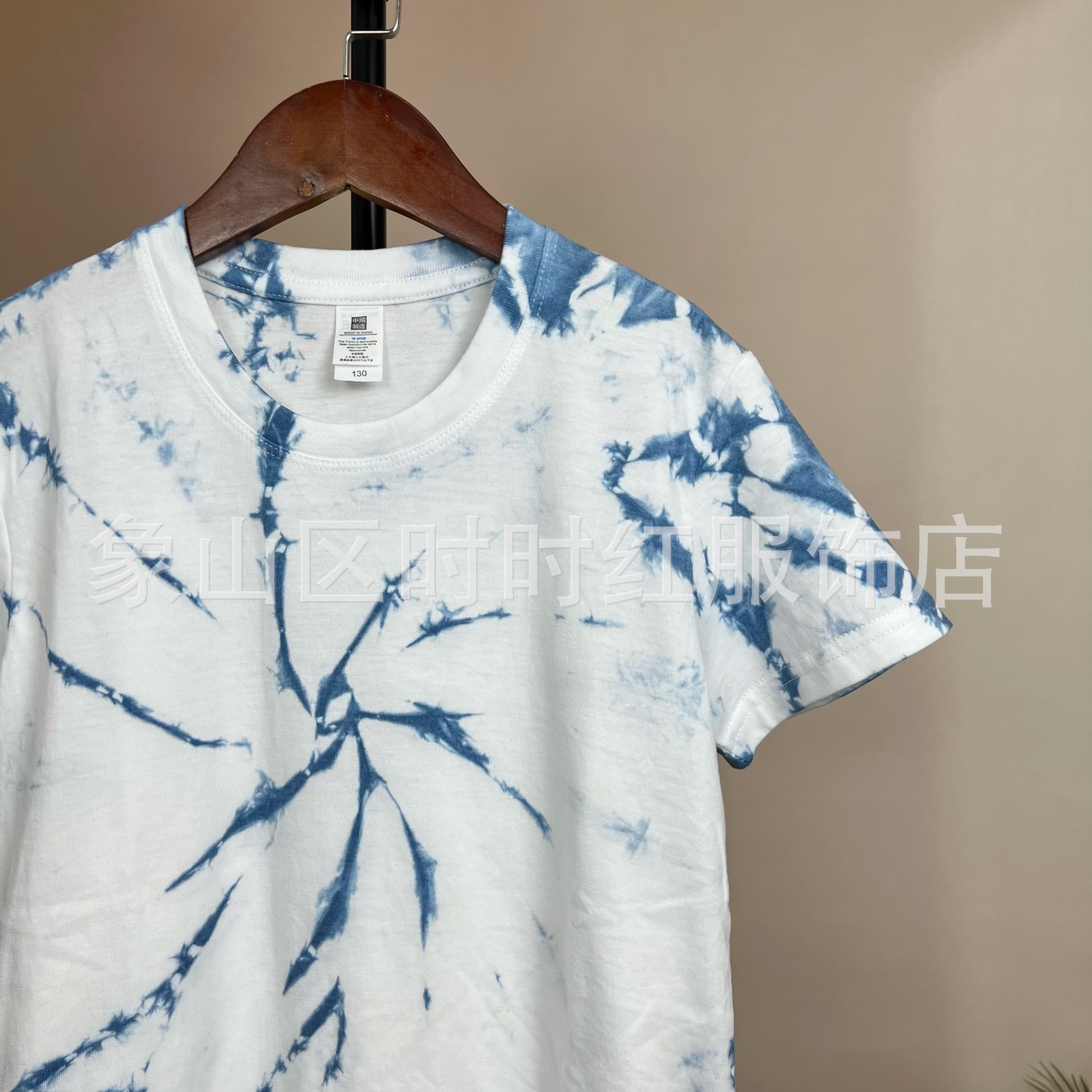 어린이 넥타이 염색 티셔츠 Yunnan Guizhou 수제 타이 염색 식물 염색 여름 반팔 아동용 의류 도매스토어 가기