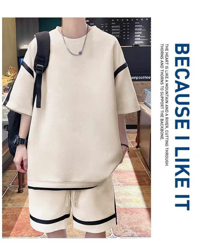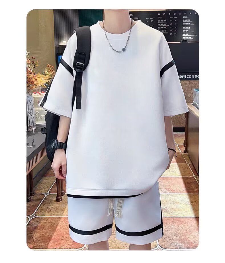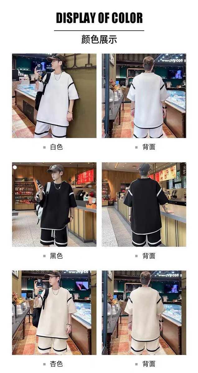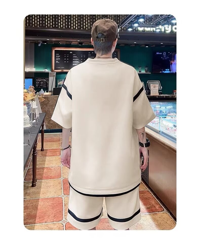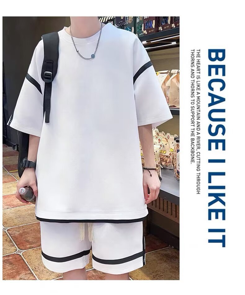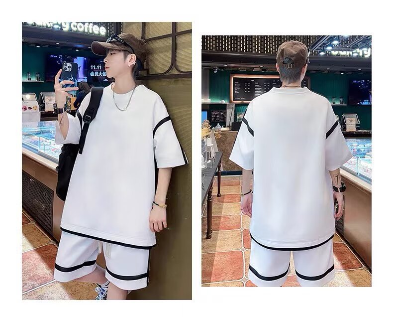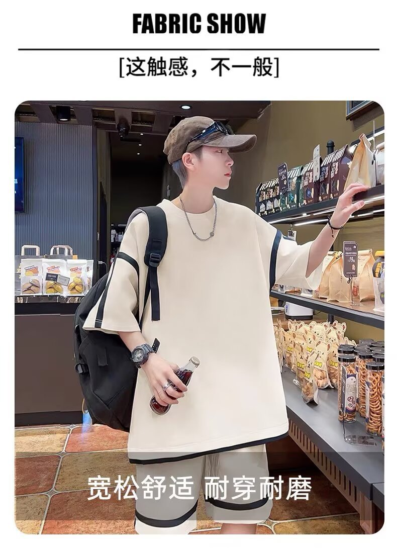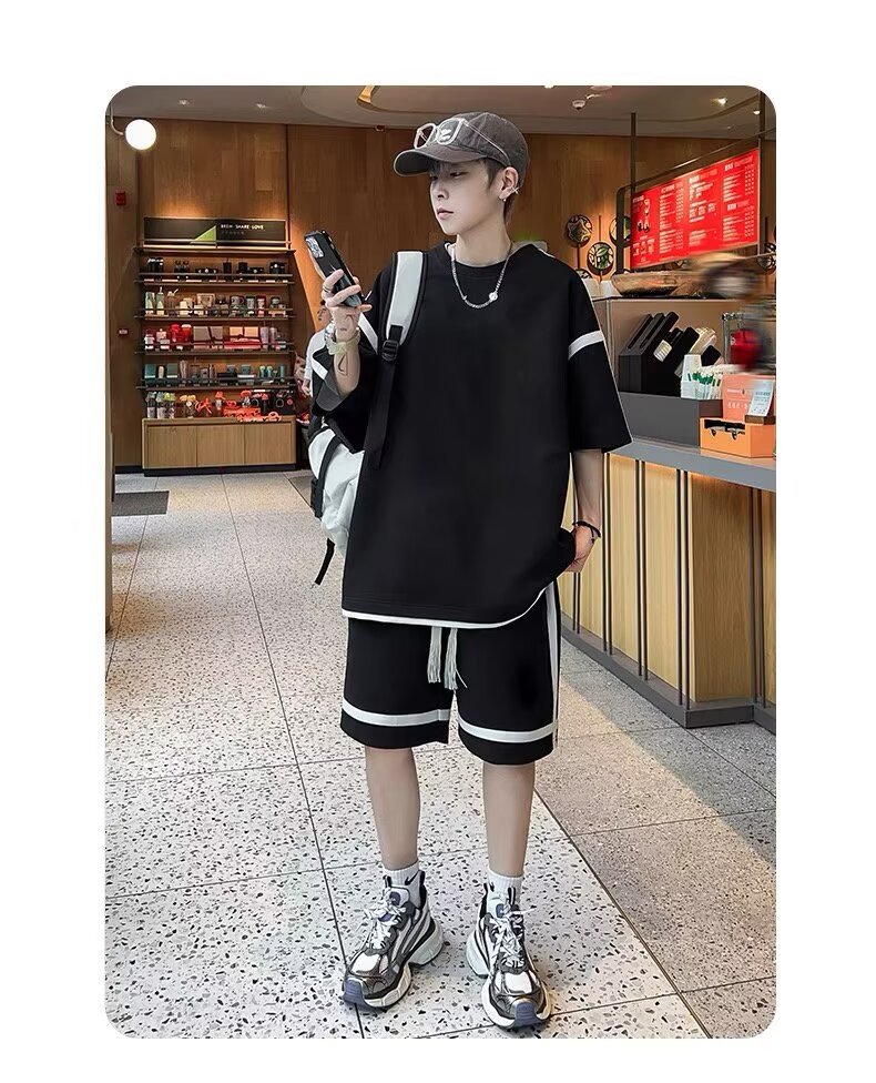 재고 도매 홍콩 스타일 남성 여름 세트 청소년 레저 루즈 티셔츠 패션 브랜드 레저 스포츠 여름 세트스토어 가기